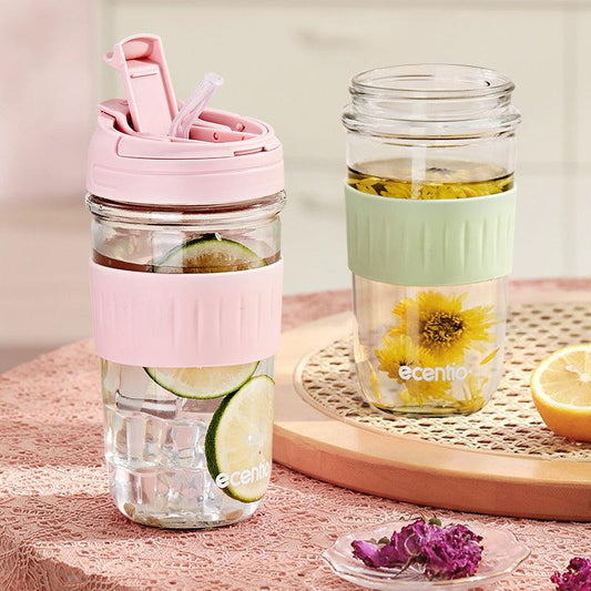 ecentio botol air minum sedotan tempat minum lucu kaca 500ML