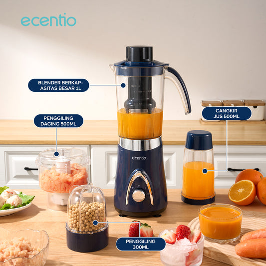 ecentio Blender Slow Juicer Pro 4 in 1 – Chopper Makanan Multifungsi 1L dengan Kunci Pengaman Anak