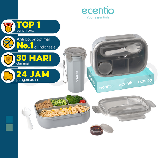 ecentio kotak bekal anti tumpah kotak tempat bekal 1200ml+500ml free sendok kotak saus BPA FREE