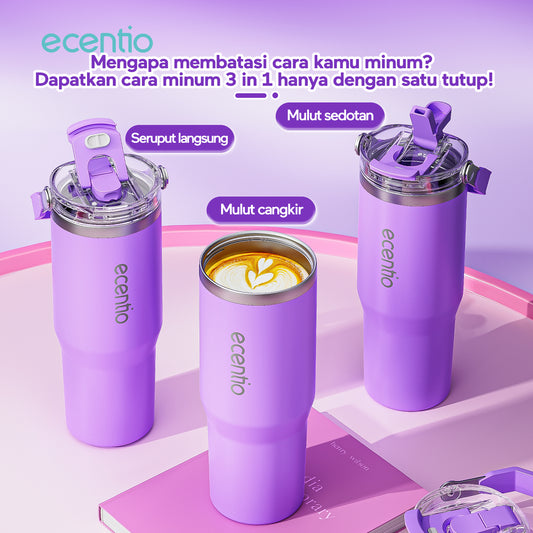ecentio tumbler Stainless Vacuum 900ml ungu briu/pink/beige Portable Thermos Botol minum besar