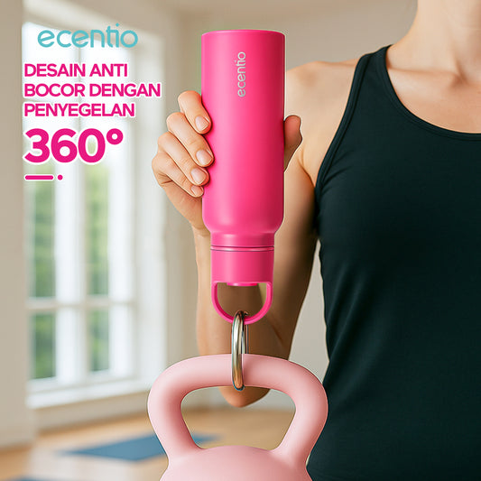 ecentio Botol Termos Outdoor 650ml — Satu Tangan, Siap Minum! (Pink Edition)