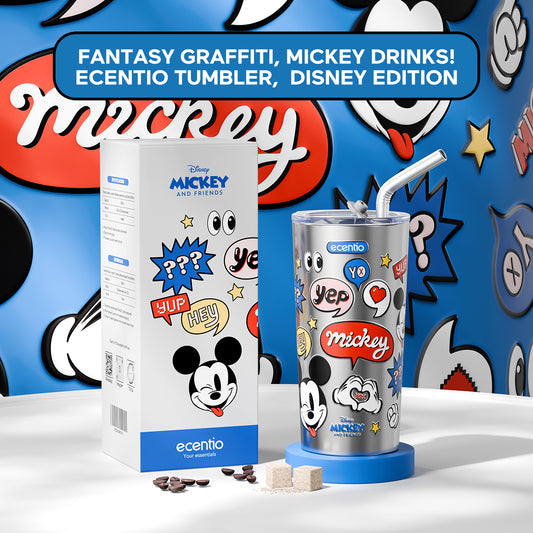 【Original】ecentio 600ml 304 Stainless Steel botol minum Tutup Ganda Disney Micky hitam