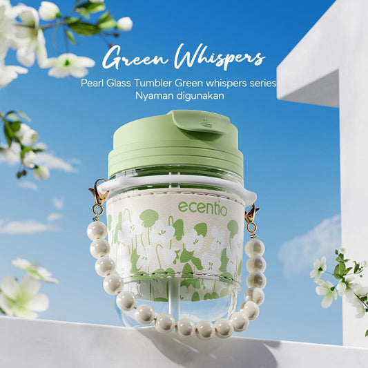 ecentio “Green Whispers” tumblers Botol Minum Pearl Glass 350ML