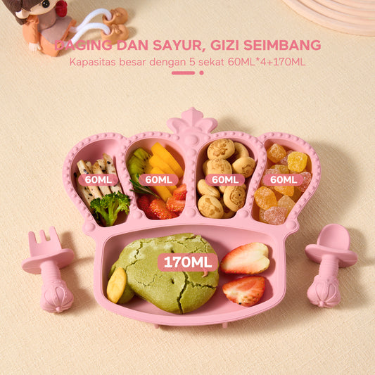 ecentiokids Piring makan mahkota 5 sekat Piring Sendok Silikon Bayi