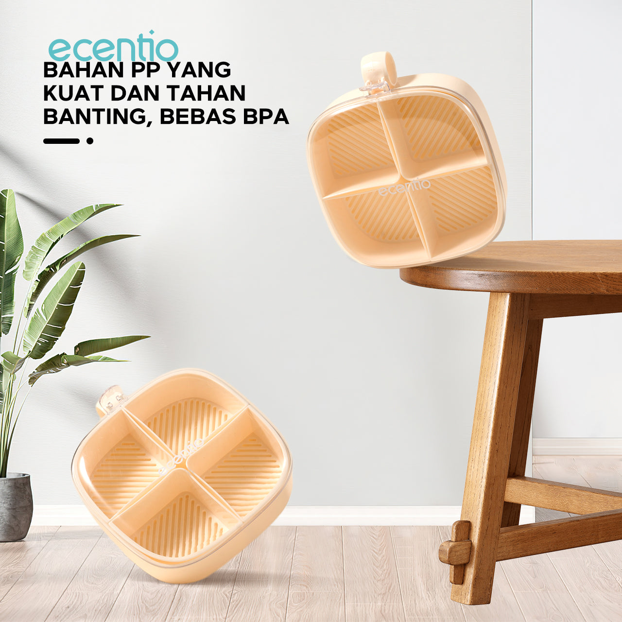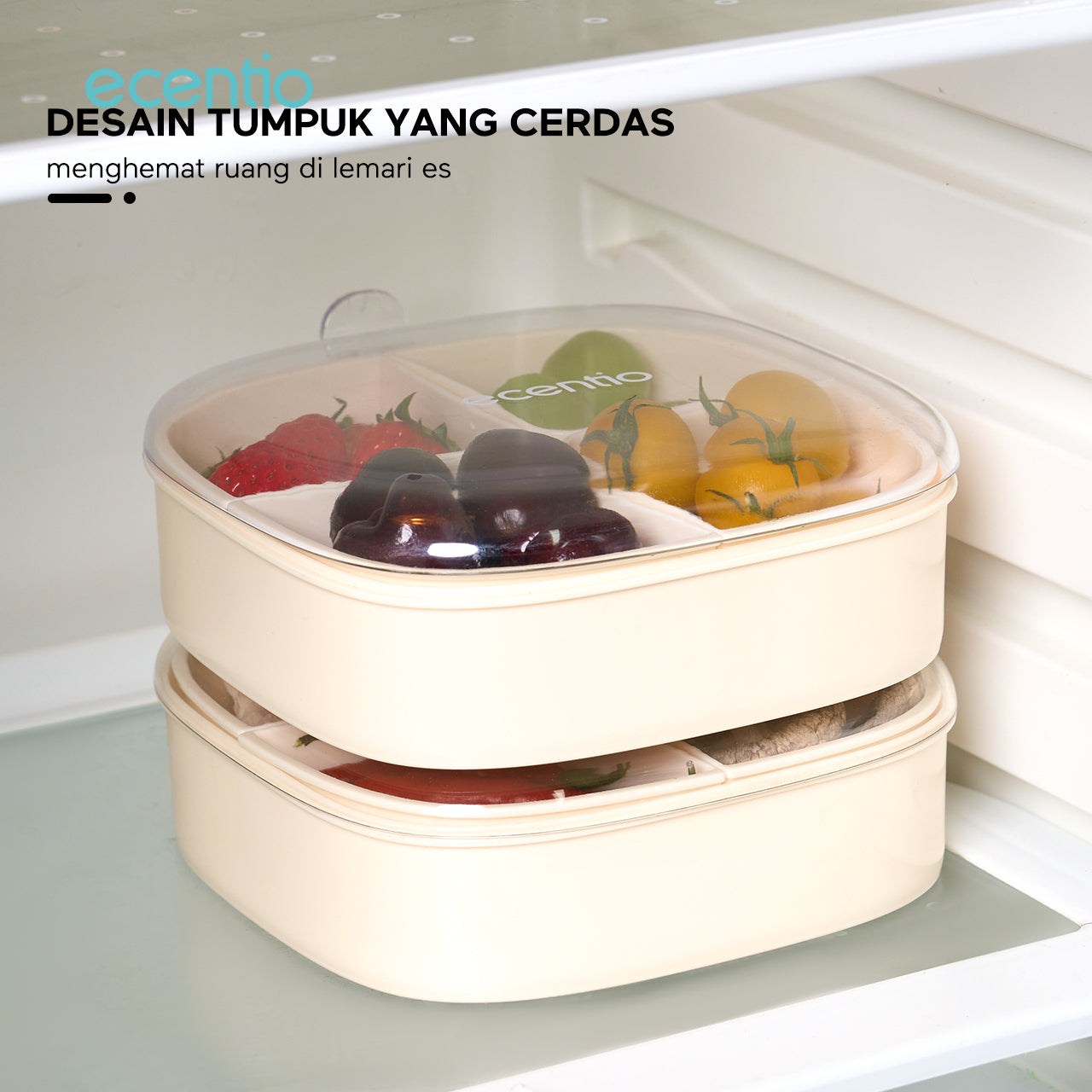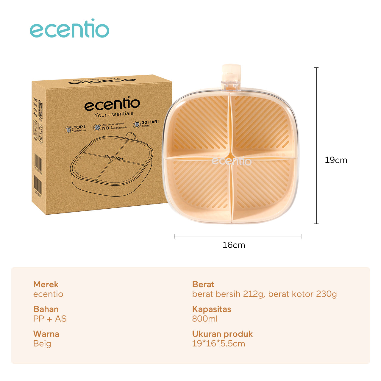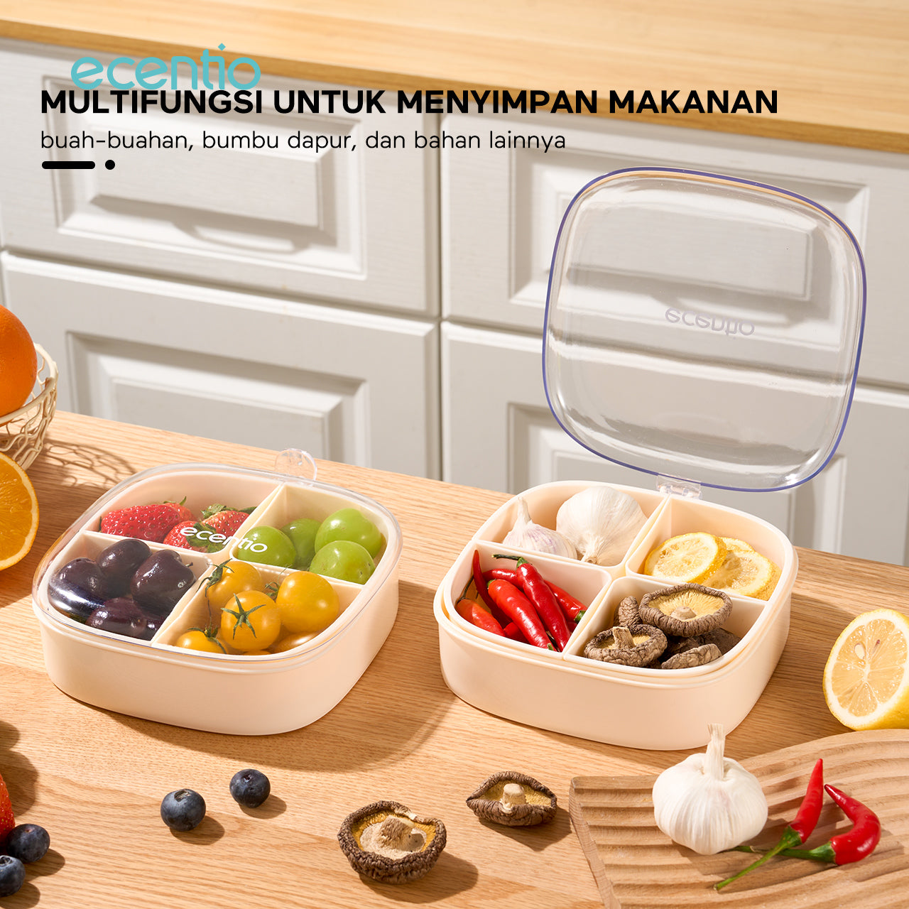 ecentio Wadah Penyimpanan Makanan 4 Sekat 800ml Bebas BPA dengan Penutup Transparan
