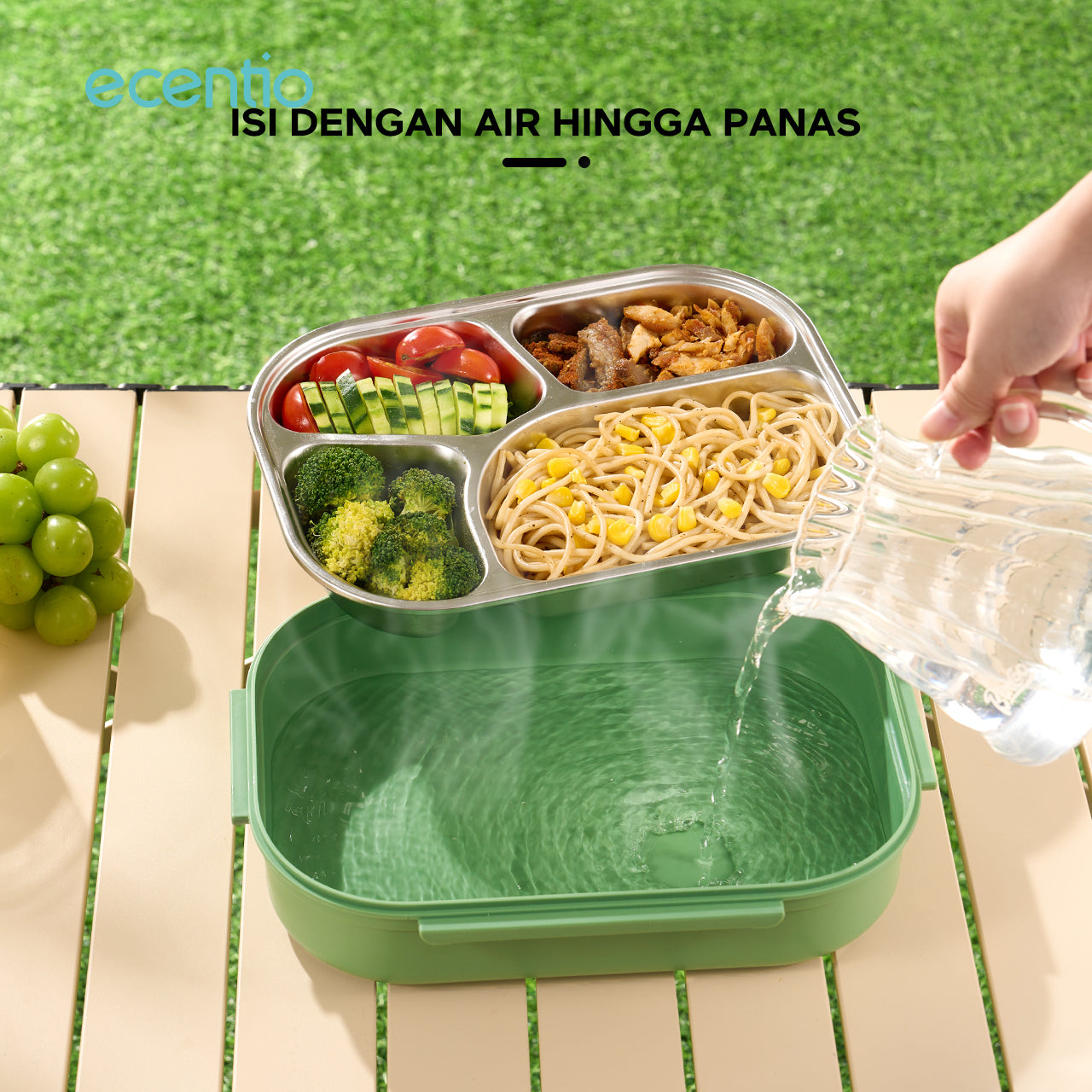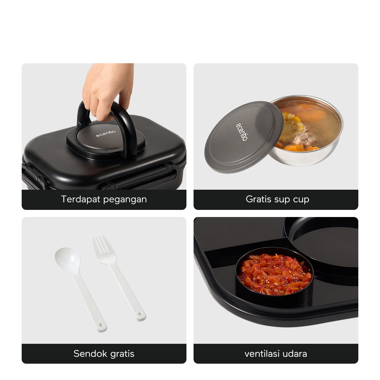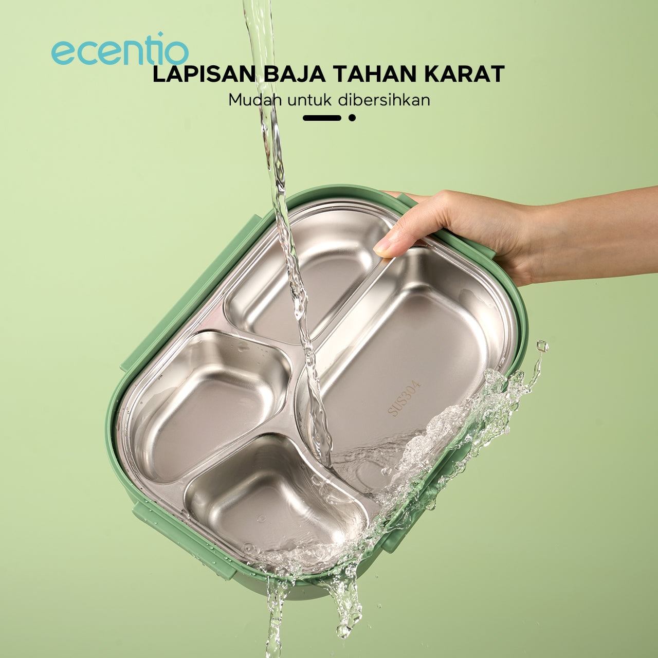 【1.0 anti tumpah】ecentio lunch box stainless 1100ml dan tempat sup 360ml sauce free sendok