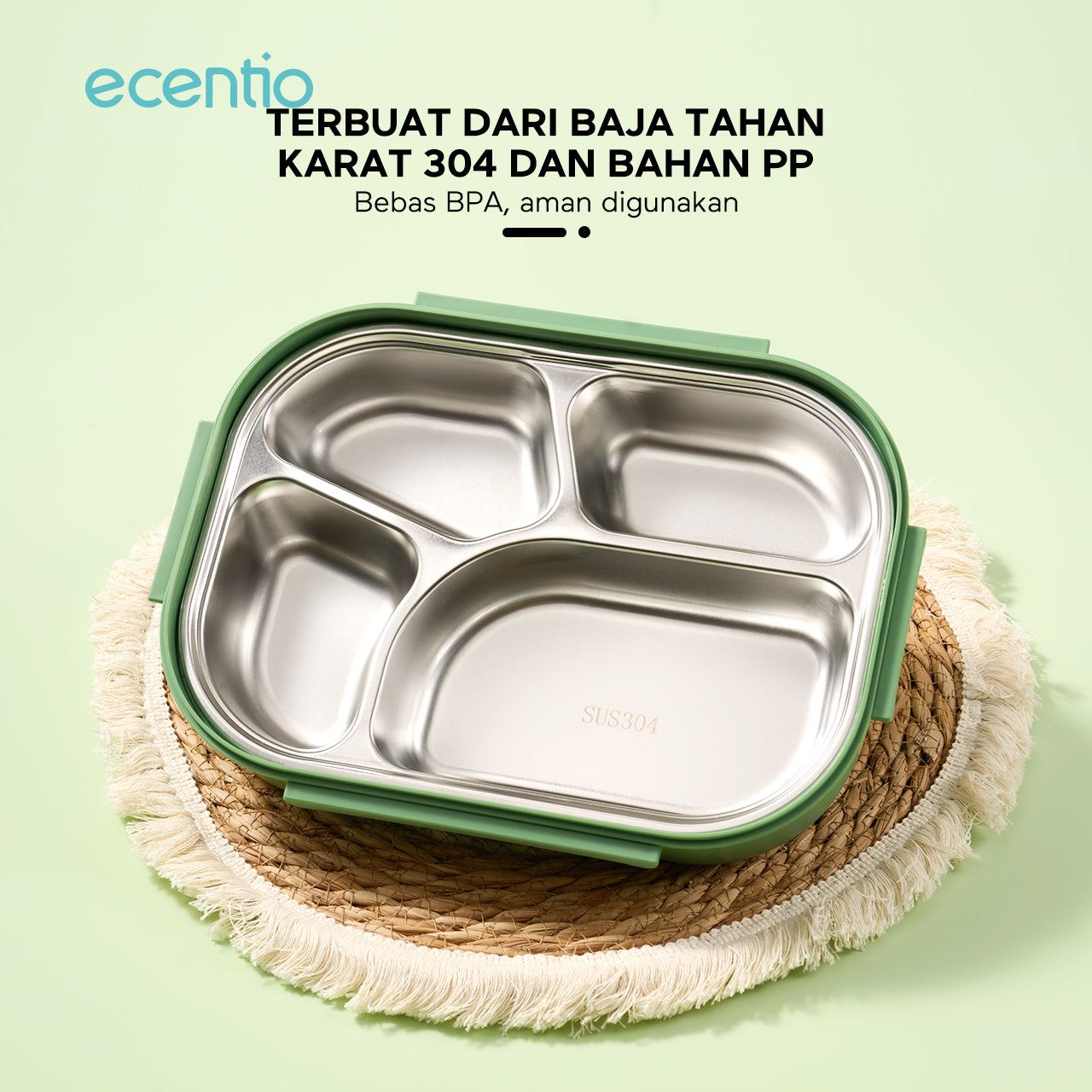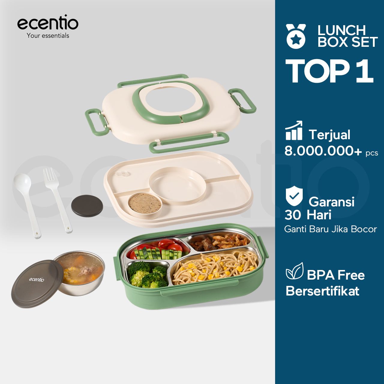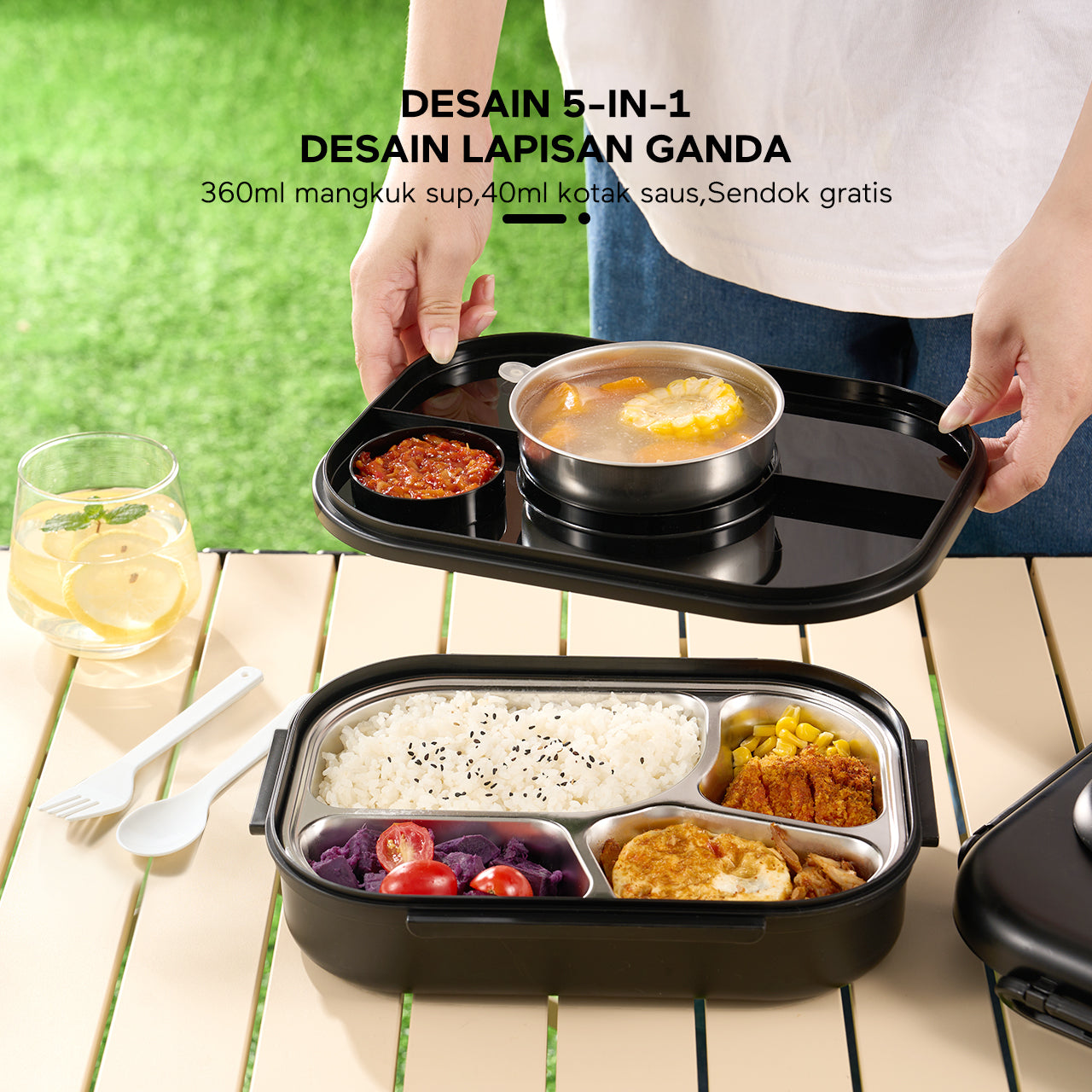 【1.0 anti tumpah】ecentio lunch box stainless 1100ml dan tempat sup 360ml sauce free sendok