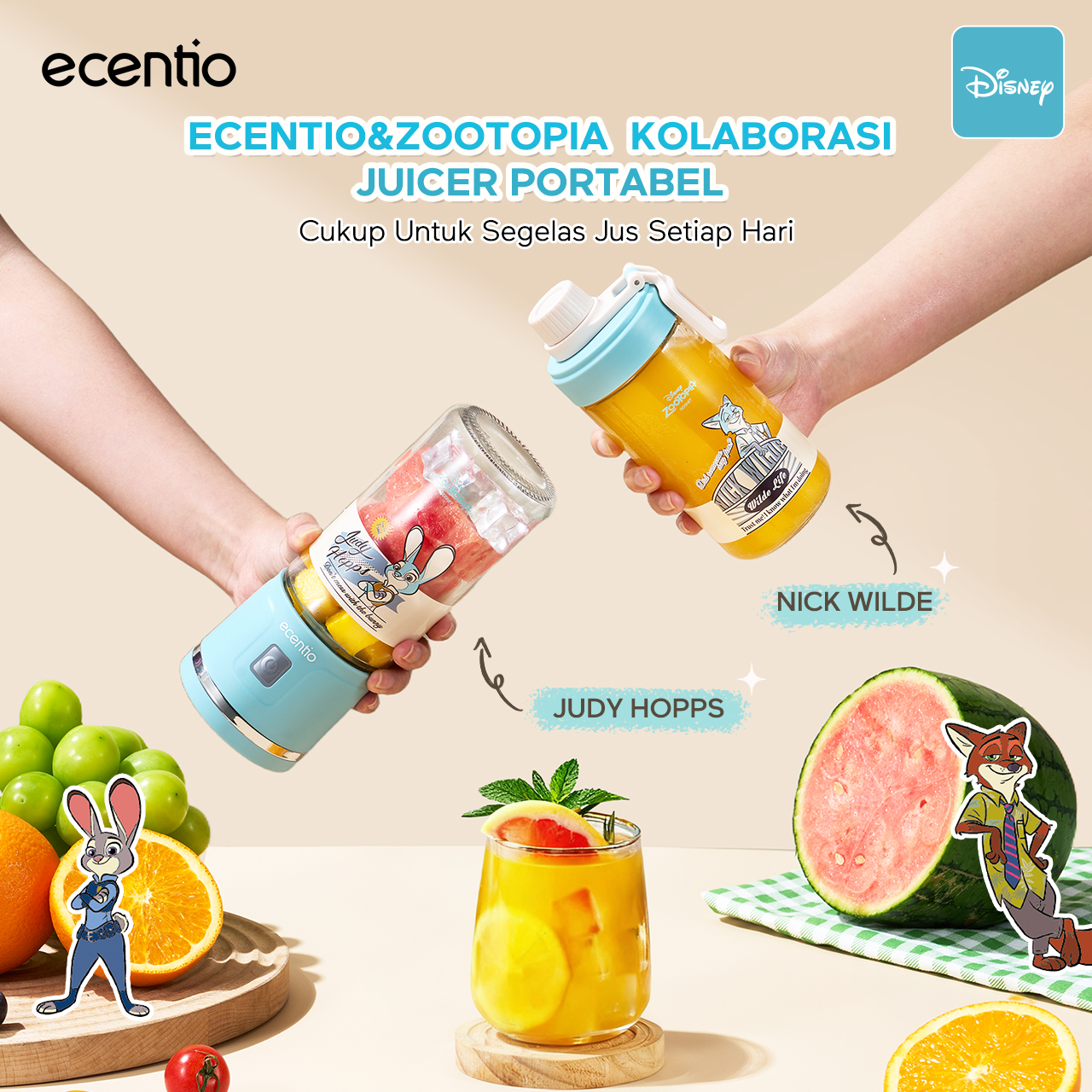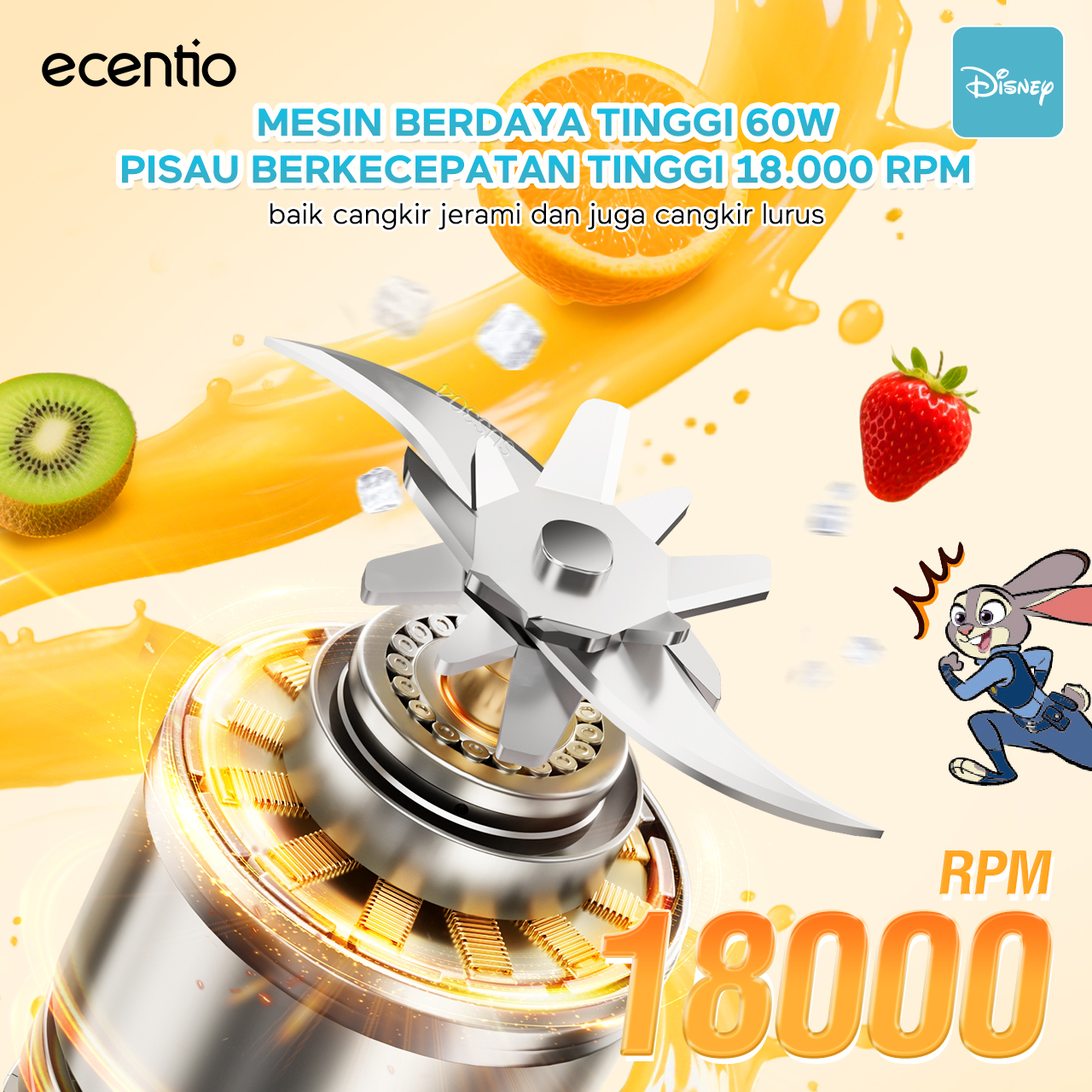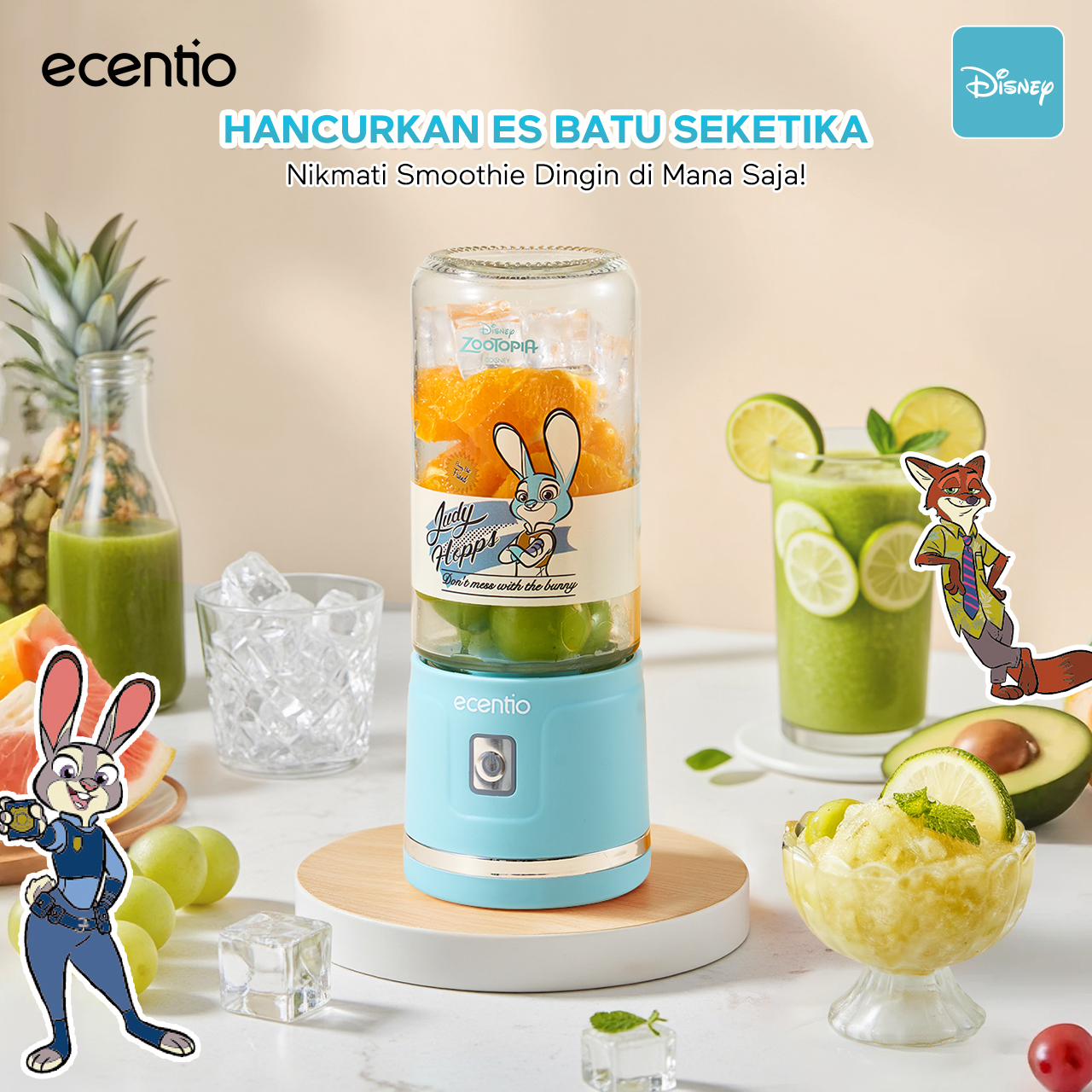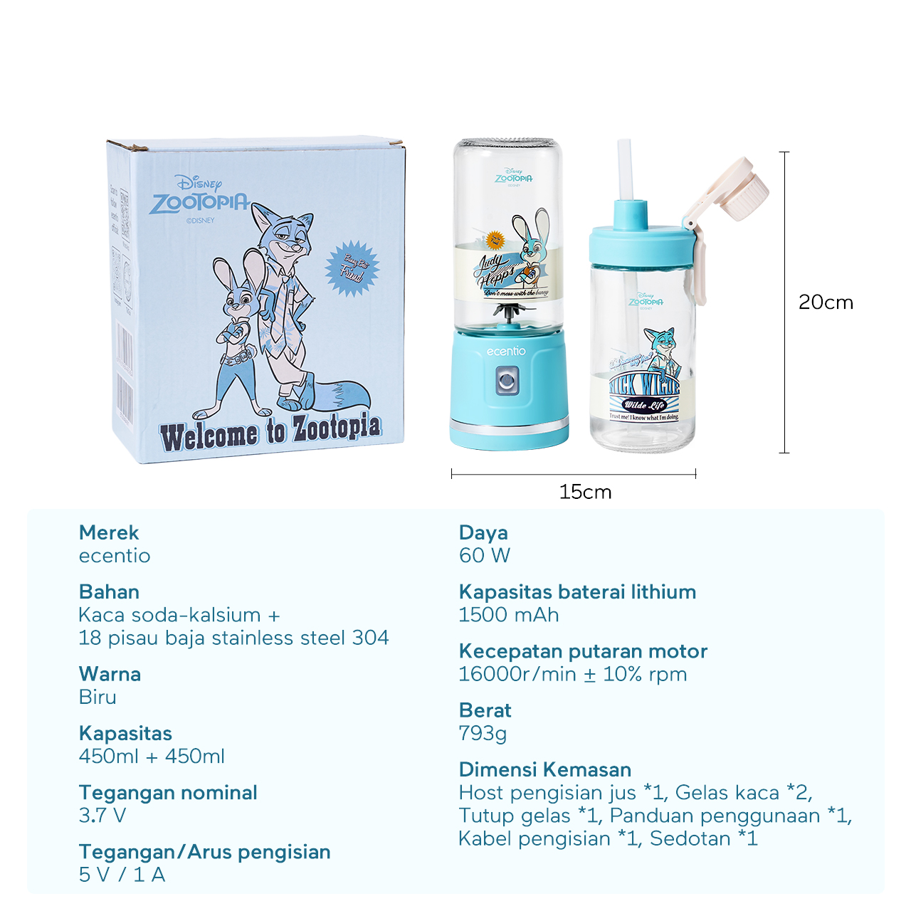 【Disney juicer Series】ecentio juicer blender 18 Pisau 304 juicer Kaca 450ml+450ml Judy portable Nick dengan sedotan