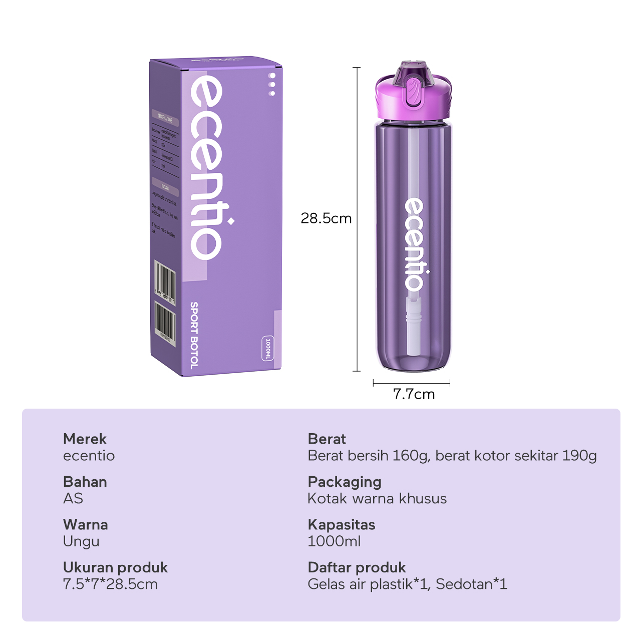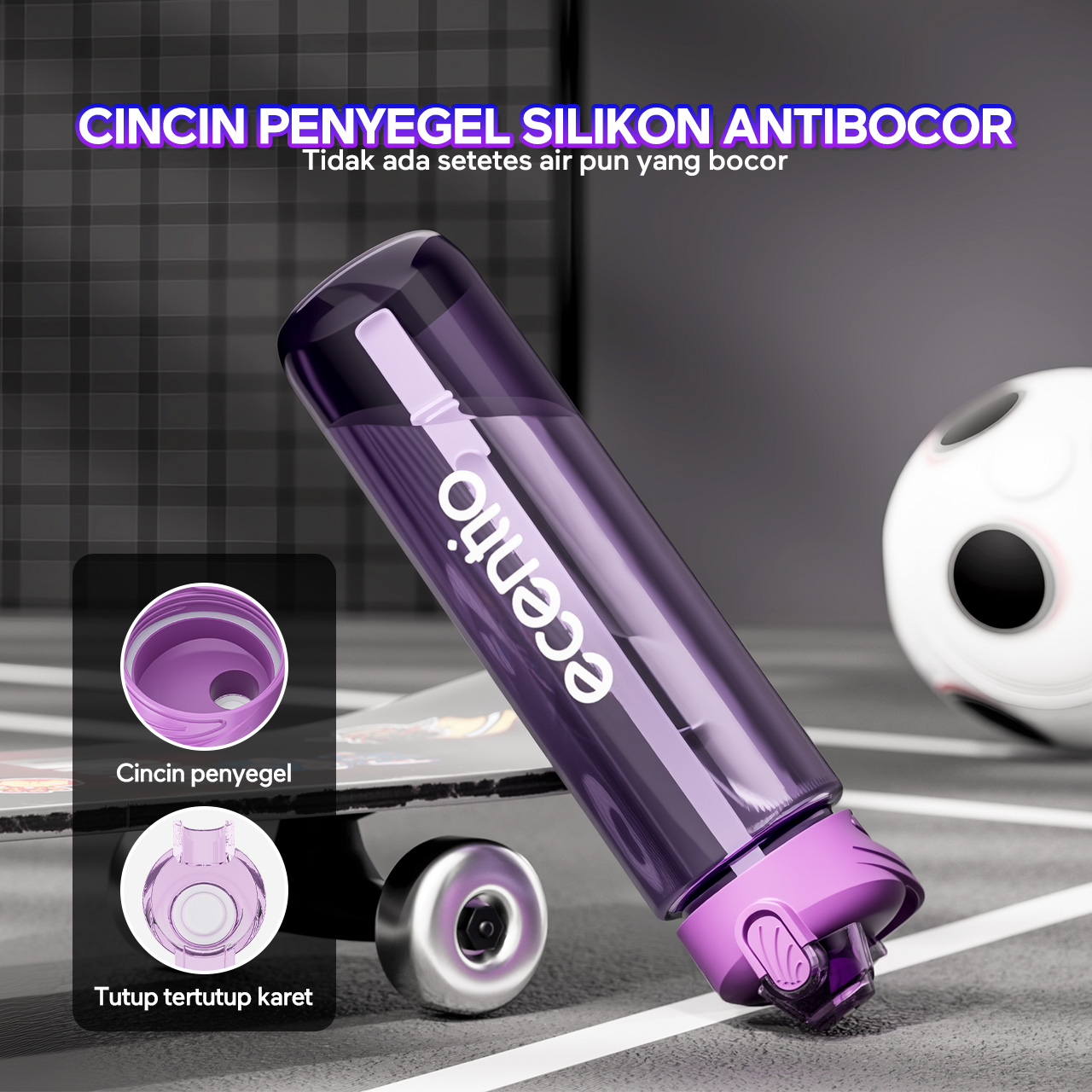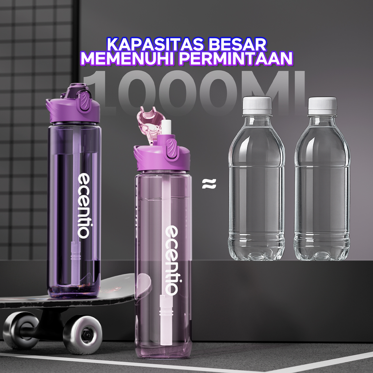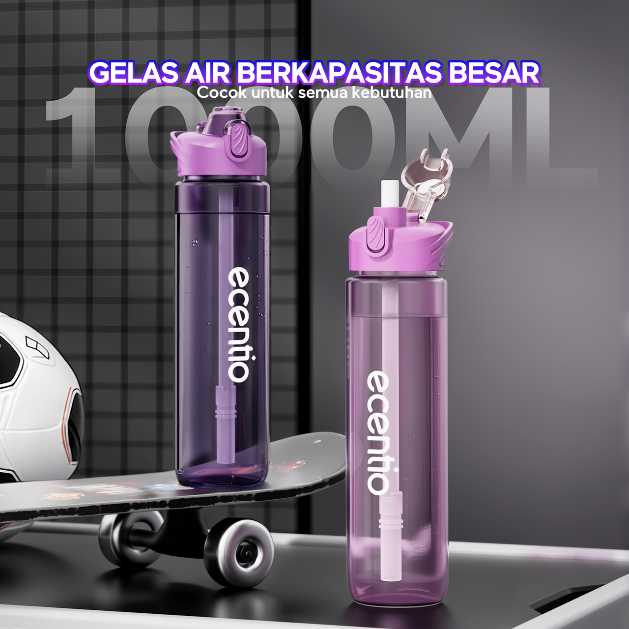 【EaseGo Series】ecentio botol minum 1000ml Portable Botol air Anak Sport 1 Liter Outdoor Anti Bocor Tahan Dingin Panas BPA Free