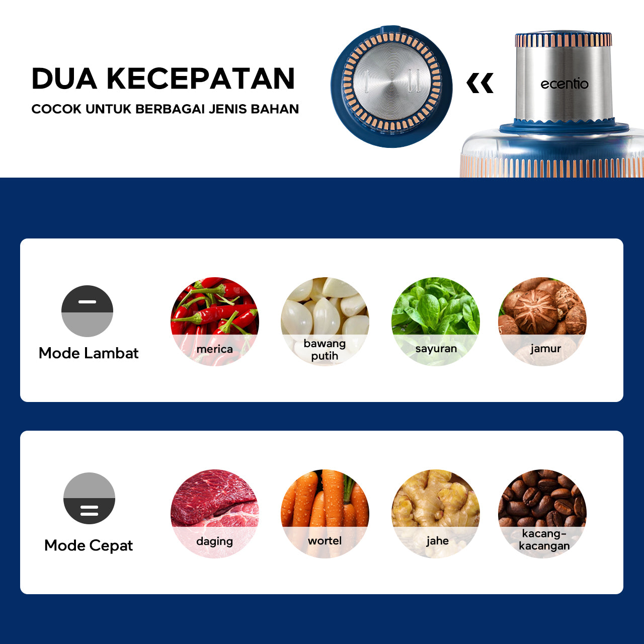 ecentio 5-in-1 Chopper Multifungsi 3L dengan 6 Pisau Stainless Steel