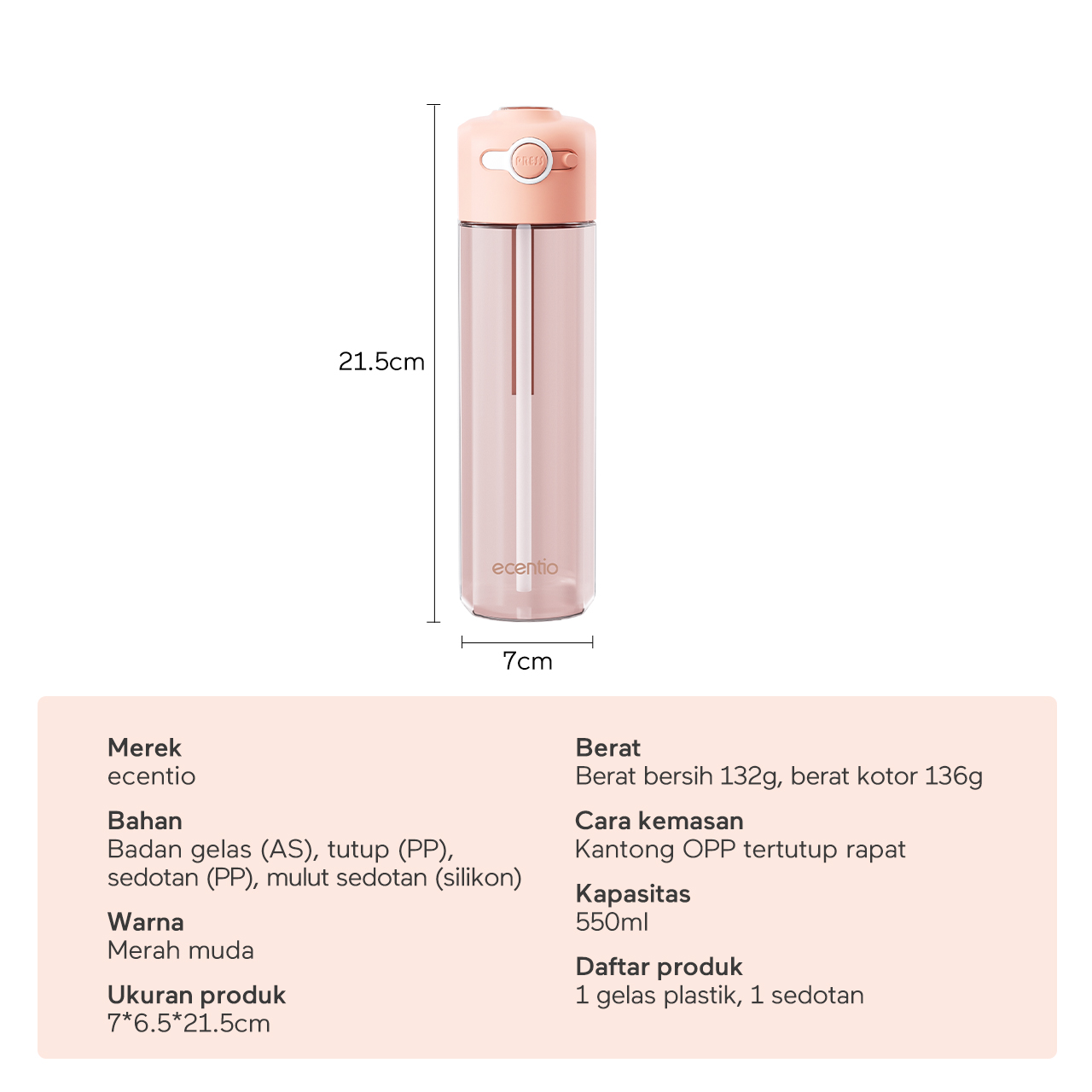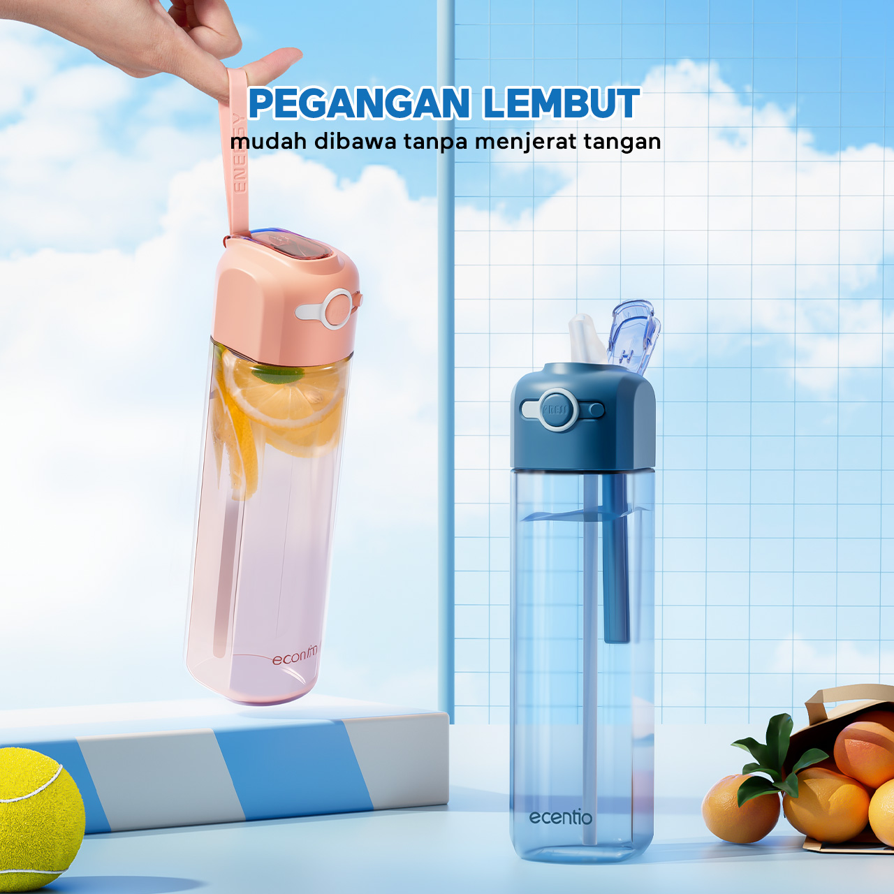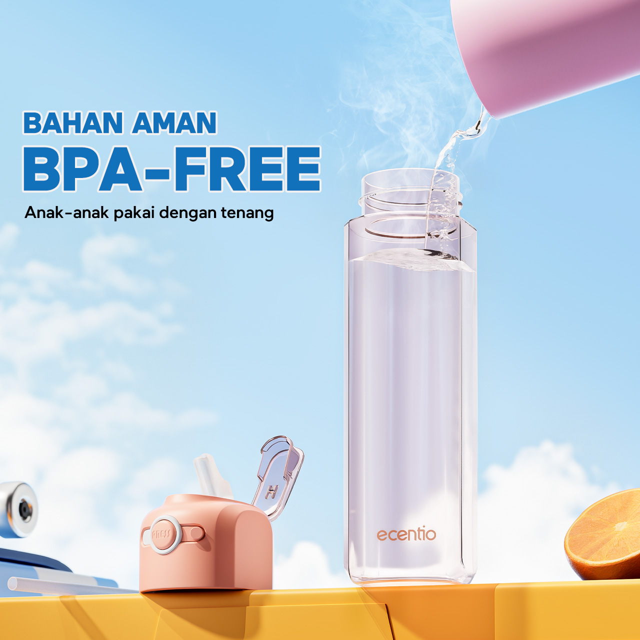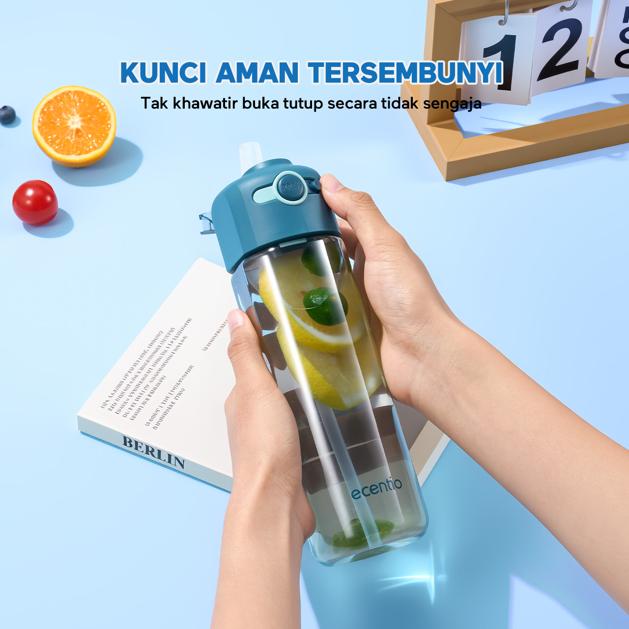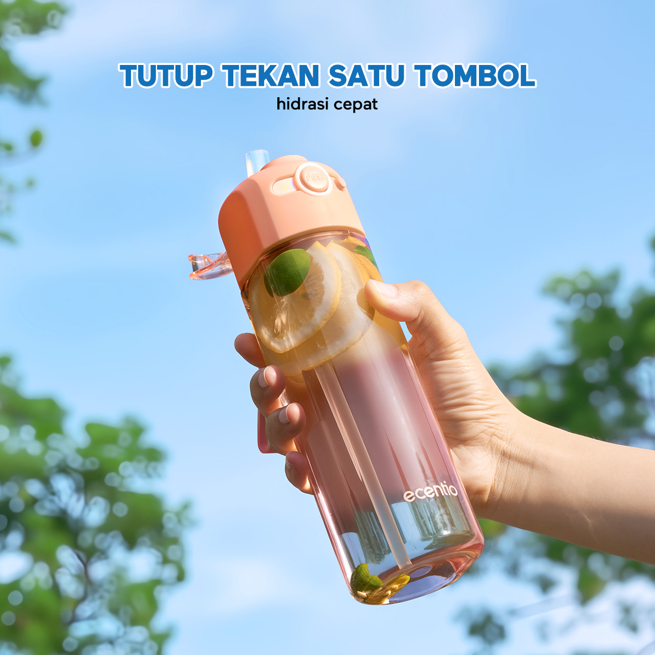 ecentio botol minum 550ml Portable Botol air Anak Sport Outdoor Anti Bocor kunci aman tersembunyi Tahan Dingin Panas BPA Free