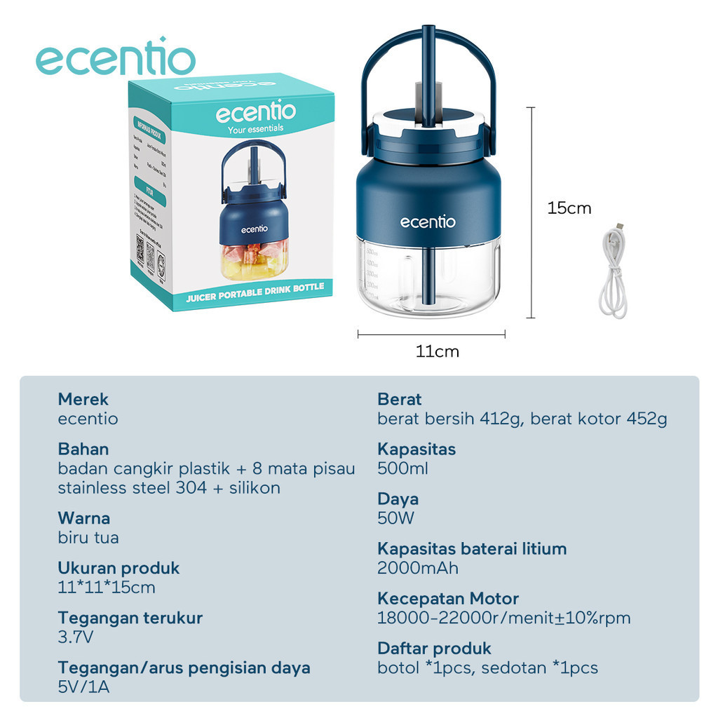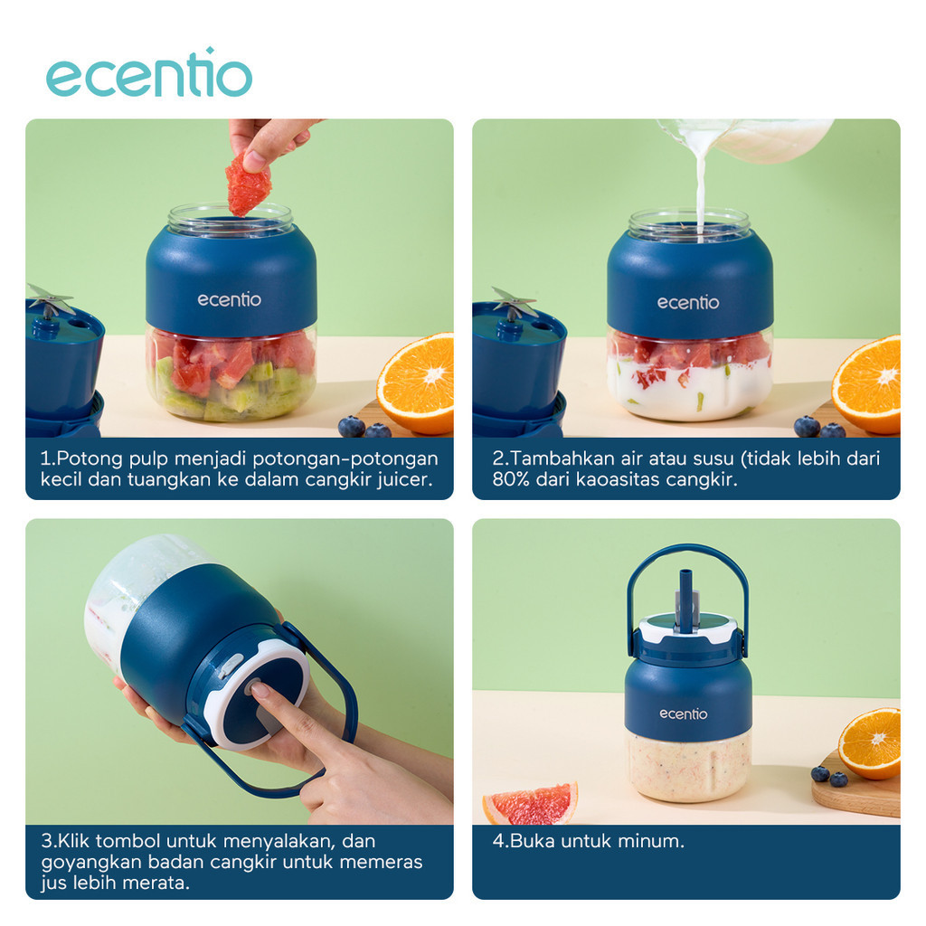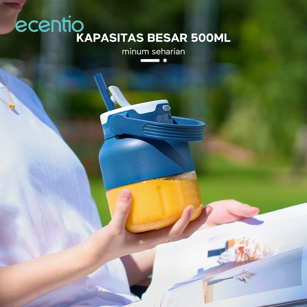 ecentio blender 8 mata pisau 500ml juicer dengan silikon sedotan Rechargeable kapasitas besar belender portable