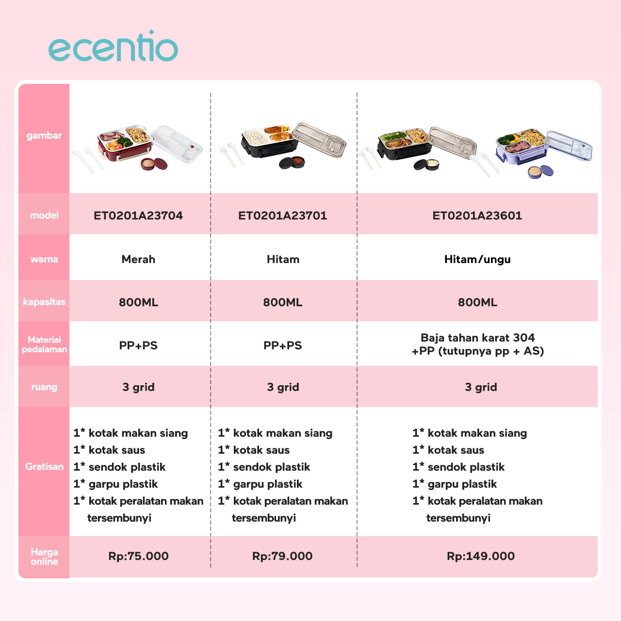 Aksesoris: 1* kotak saus, 1* sendok plastik, 1* garpu plastik, 1* kotak peralatan makan tersembunyi