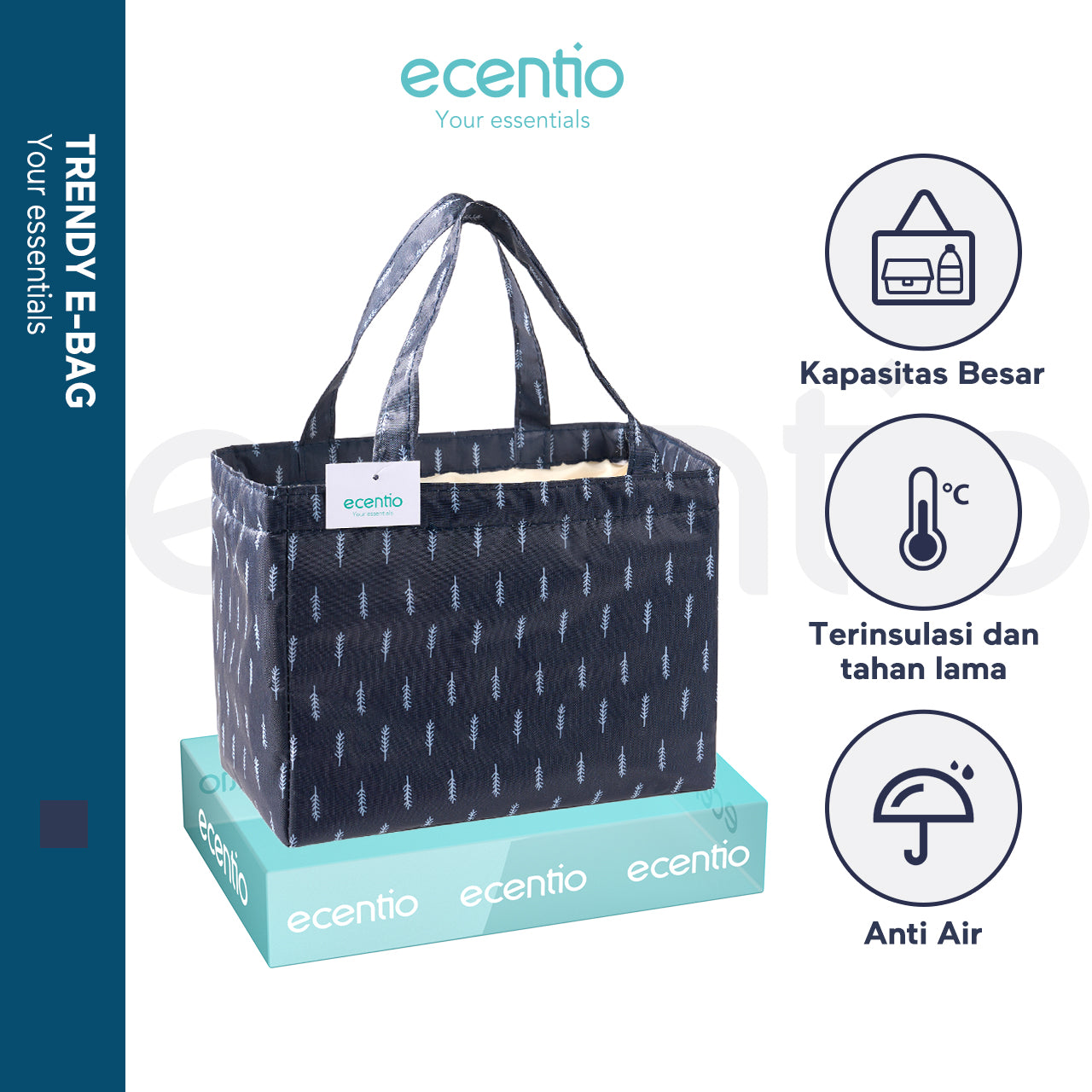 Product name:ecentio lunch warmer bag navy blue large model 25*20*17cm
