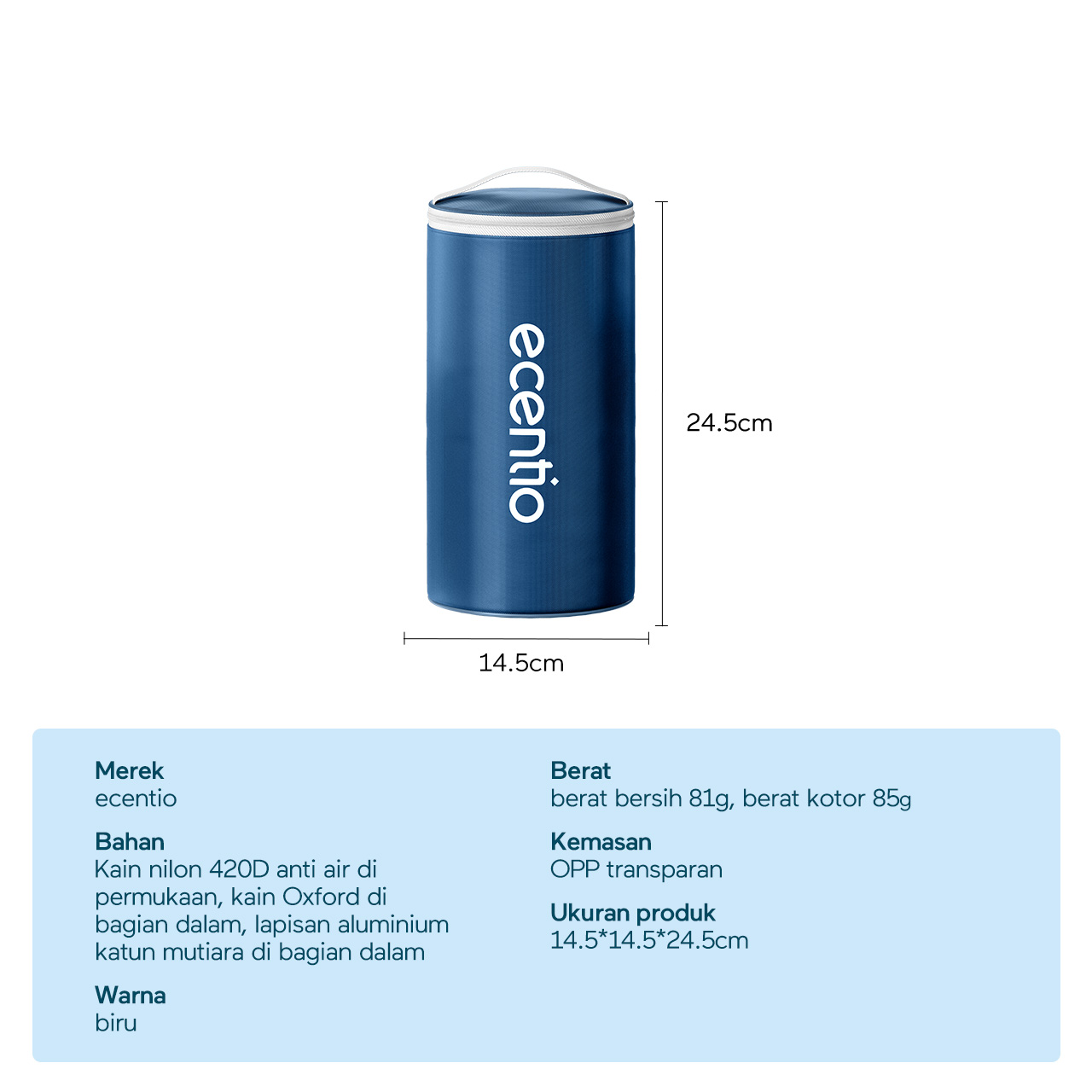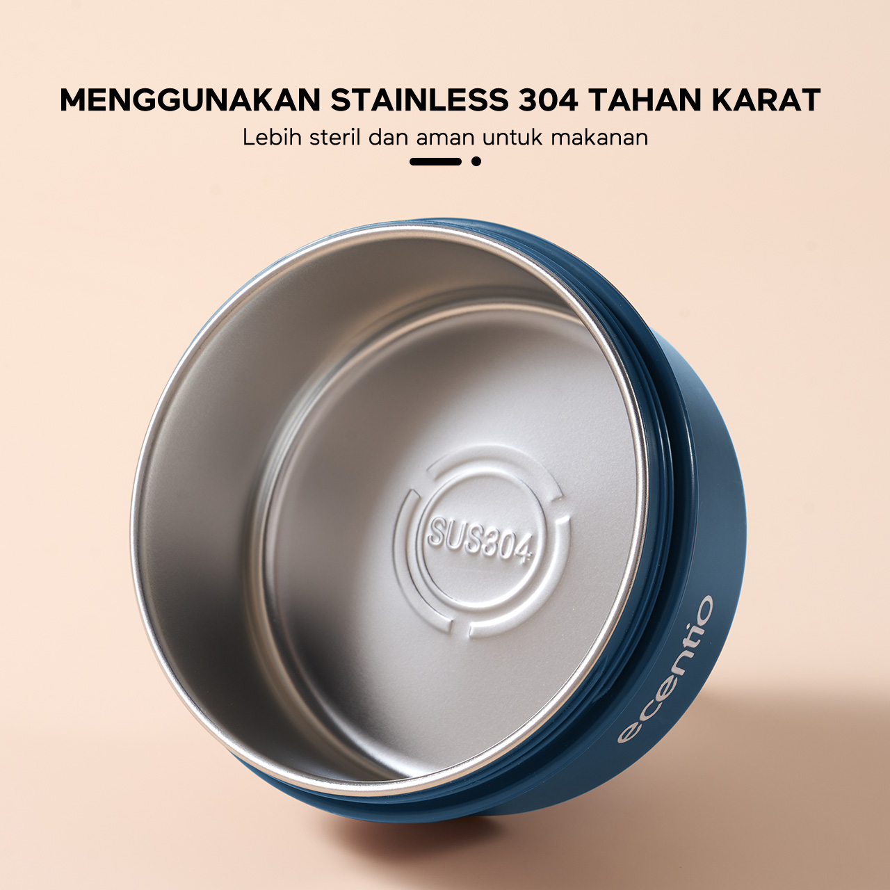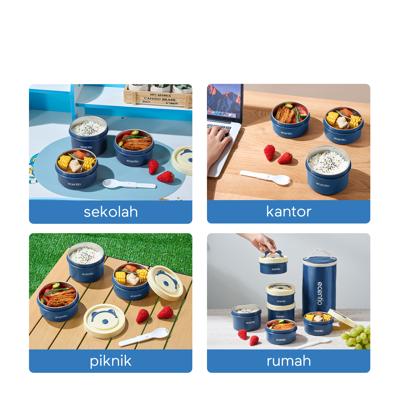 ecentio lunch box tas set 3pcs Biru Makan anti tumpah 304 Stainless Steel tas bekal dan free sumpit