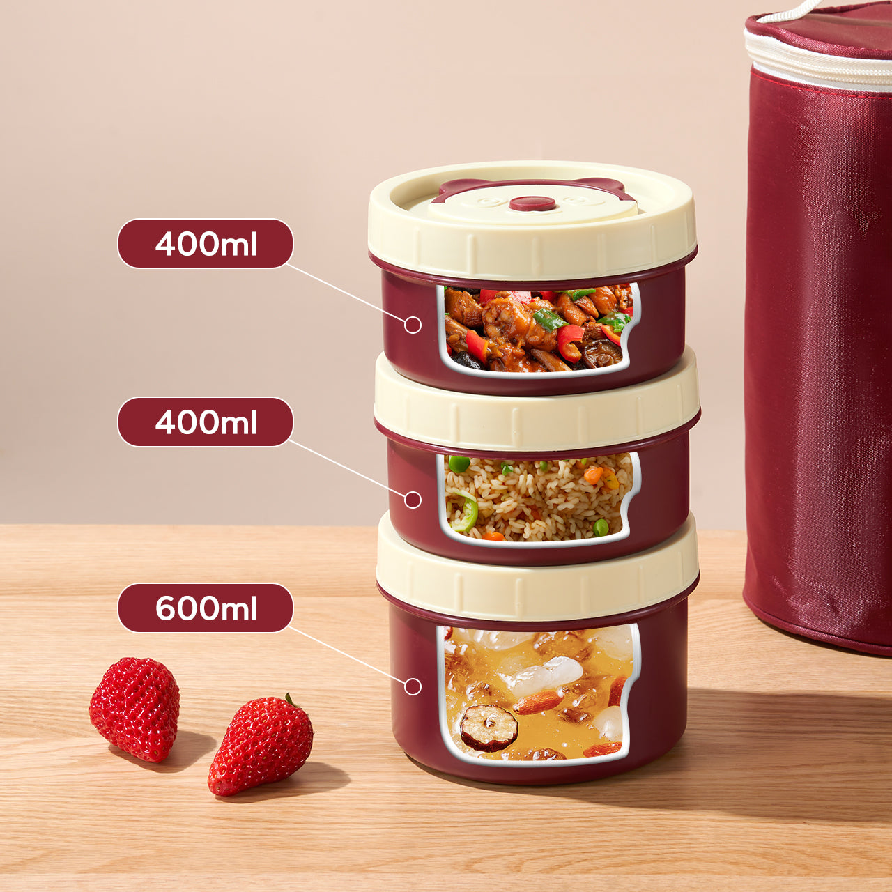 ecentio Set Kotak Makan Bulat Stainless Steel 3pcs + Tas Makan Waterproof — Bekal Praktis & Stylish