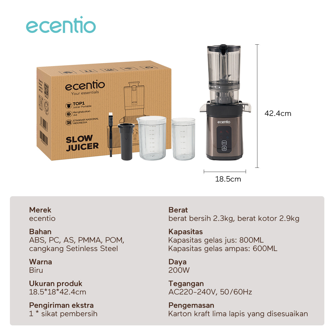 ecentio slow juicer portable 112mm caliber dan Smart Touch multifungsi blender 550ml+600ml garansi satu tahun