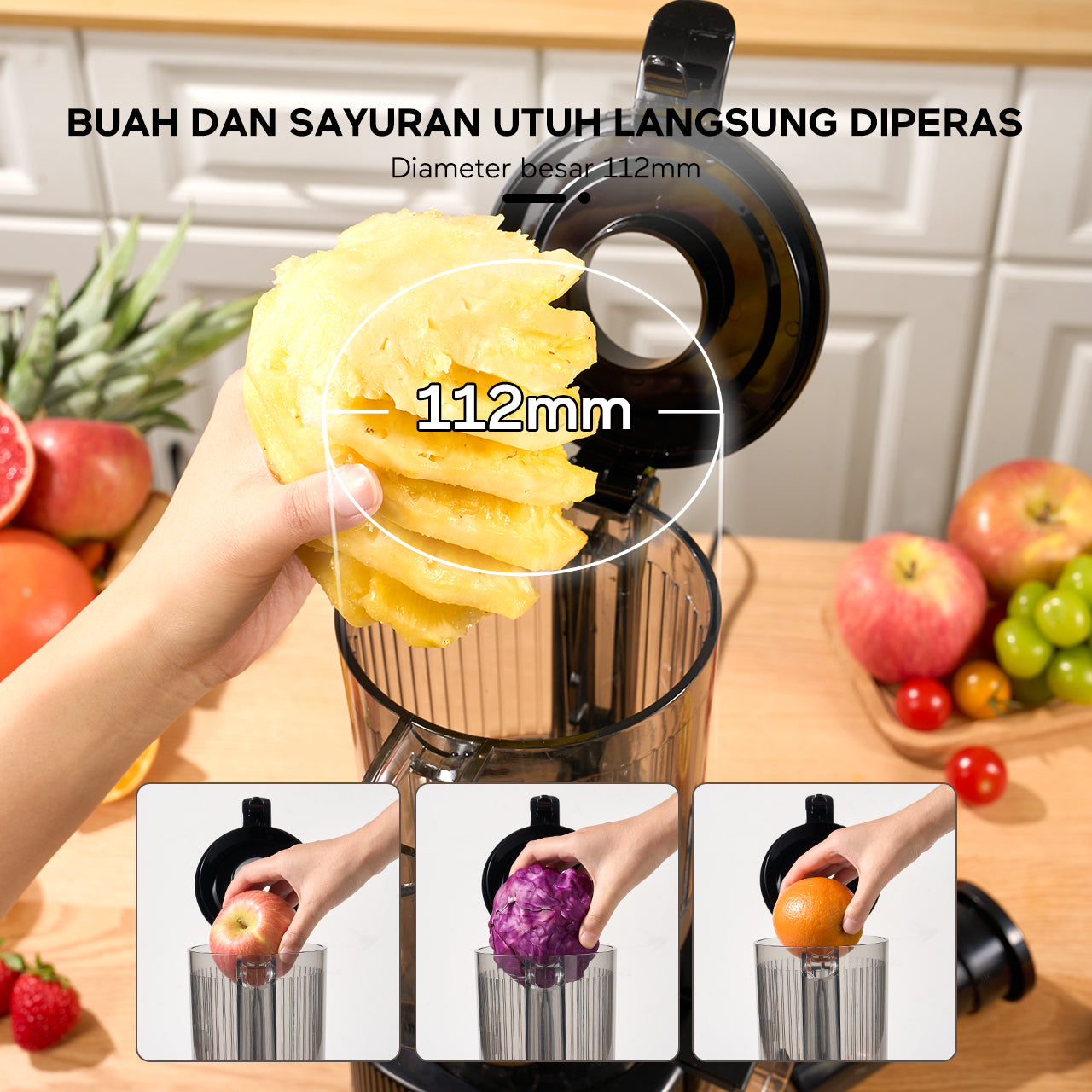 1. Buah dan sayuran utuh langsung diperas Diameter besar 112mm
