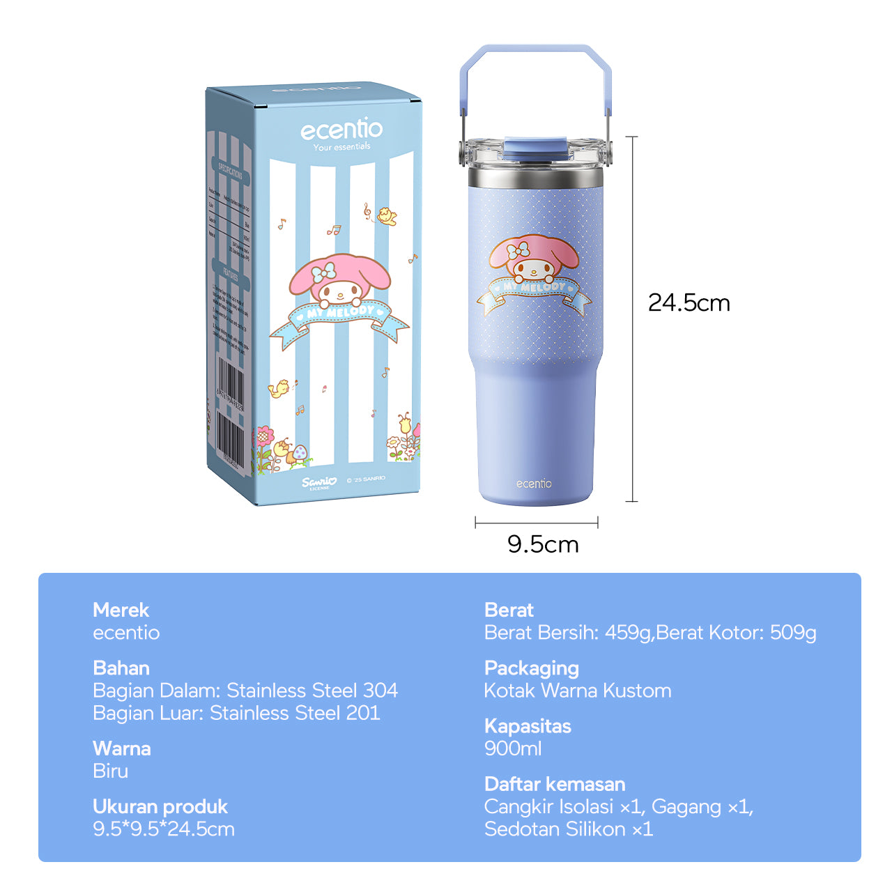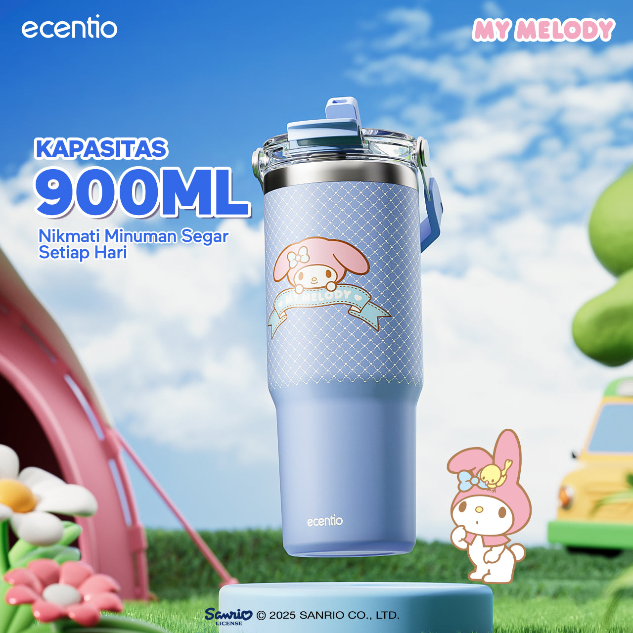 【ORI】ecentio tumbler stainless 900ml Sanrio melody luch aesthetic tahan dingin 24jam botol dengan sedotan
