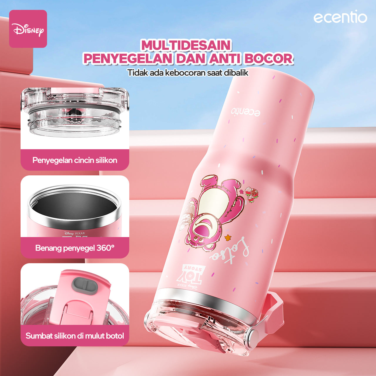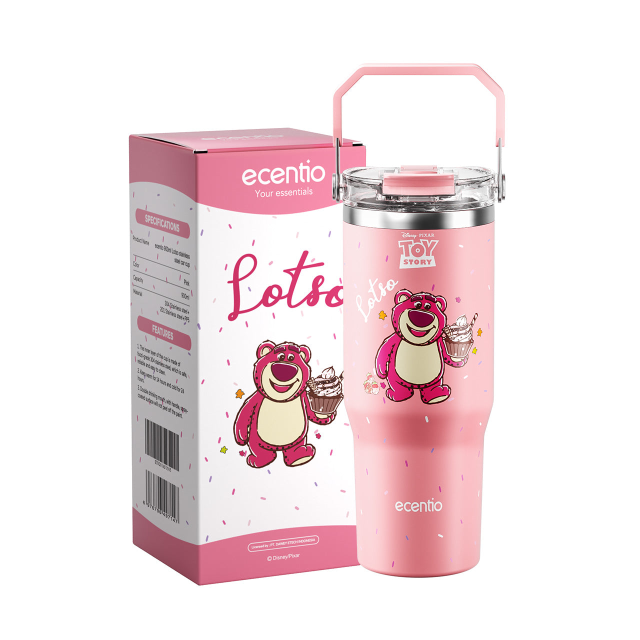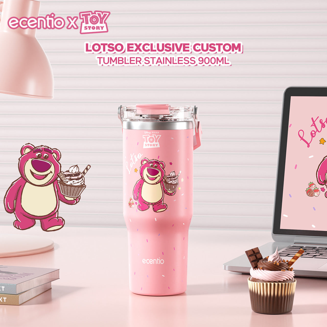 【ORI】ecentio X Toy story tumbler Stainless Vacuum 900ml Disney Lotso Portable Thermos Botol minum besar