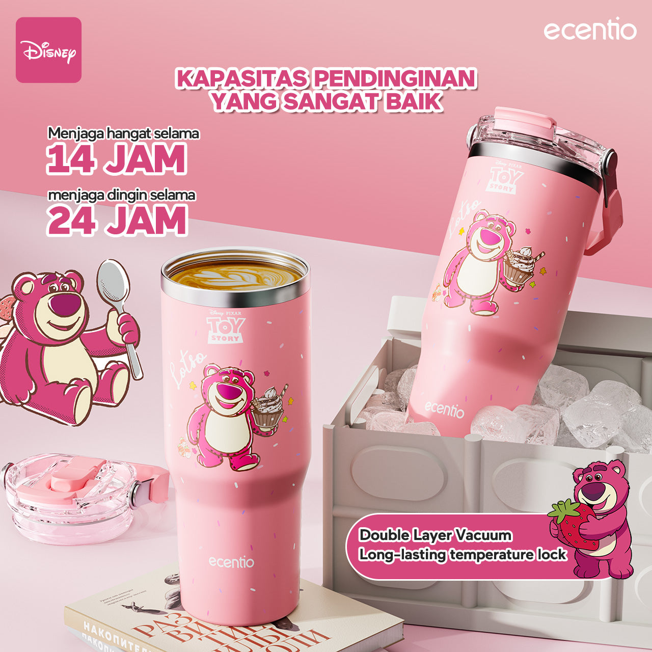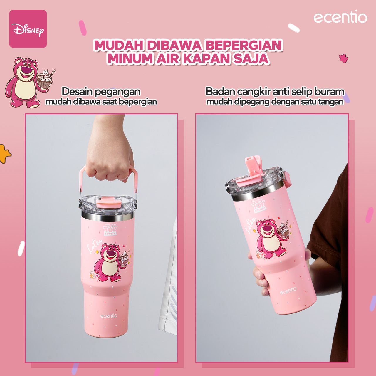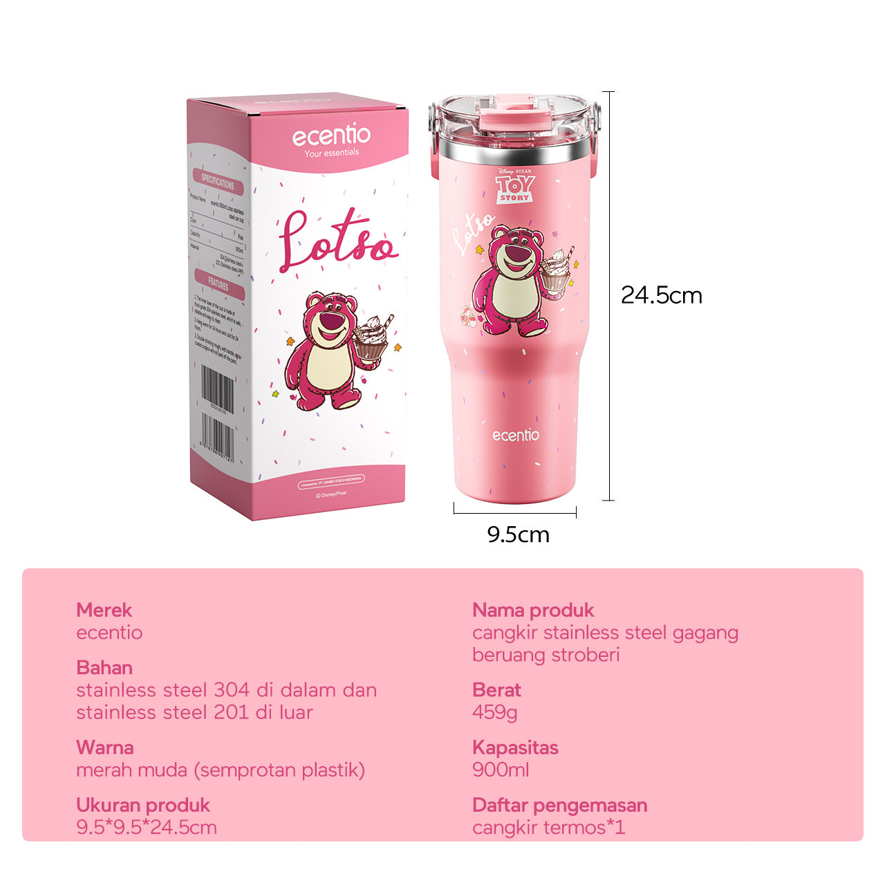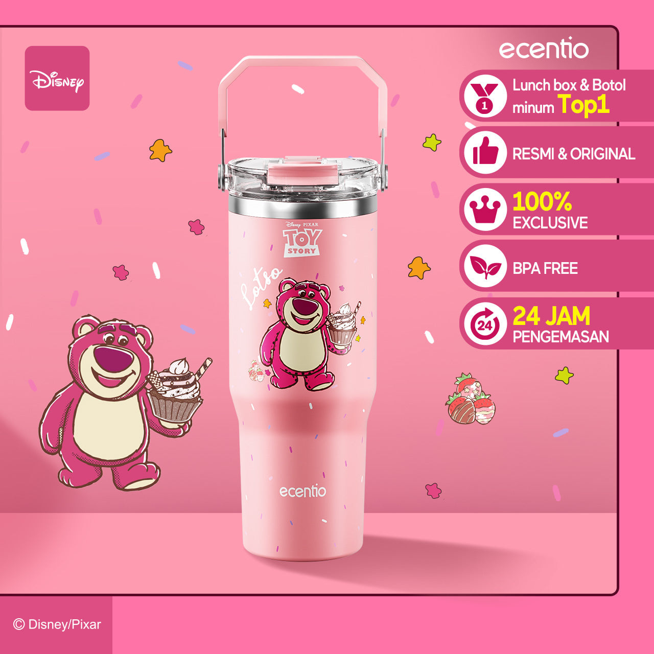 【ORI】ecentio X Toy story tumbler Stainless Vacuum 900ml Disney Lotso Portable Thermos Botol minum besar