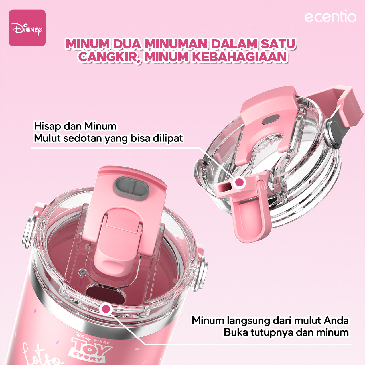 2. Desain Minum Ganda: Menawarkan dua cara minum—langsung minum dan minum dengan sedotan, praktis dan nyaman.