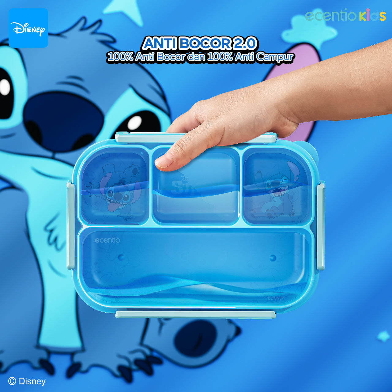 【Orignal】ecentiokids tempat makan anak Disney Stitch & Lotso lucu sekolah BPA free bayi anti tumpah lunch box