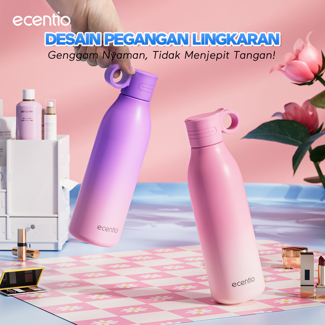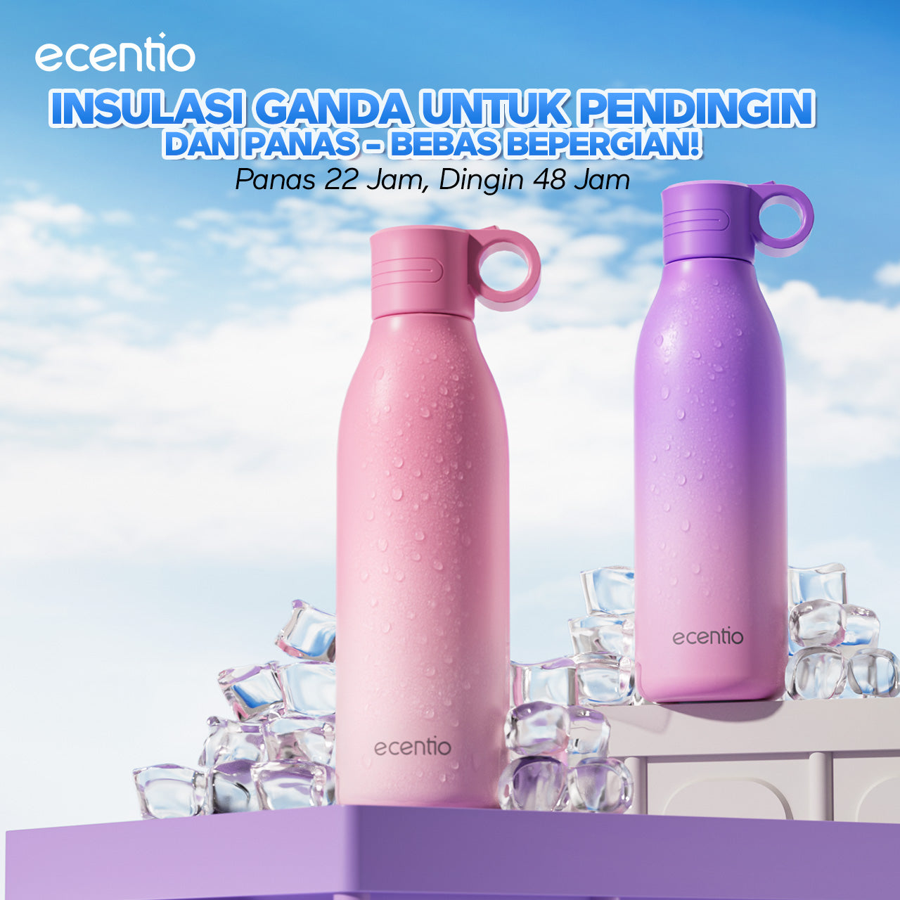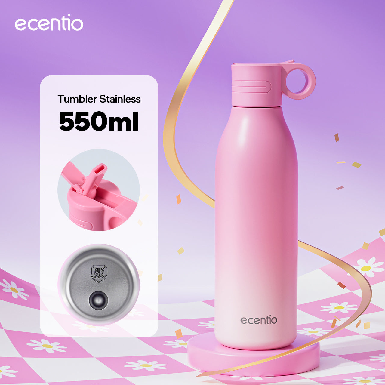 【Outdoor】ecentio outdoor bottle with handle and nozzle aktivitas outdoor tahan dingin 24 jam botol stainless portable tumblr 550ml