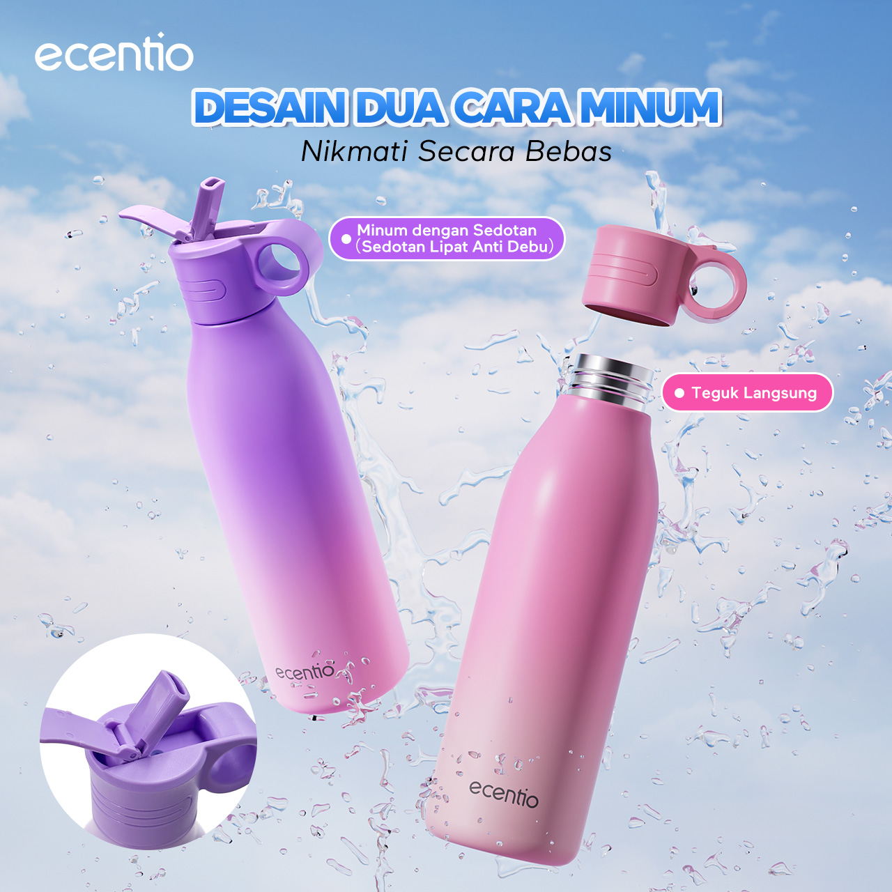 4、Desain Dua Cara Minum , Nikmati Secara Bebas Minum dengan Sedotan Teguk Langsung
