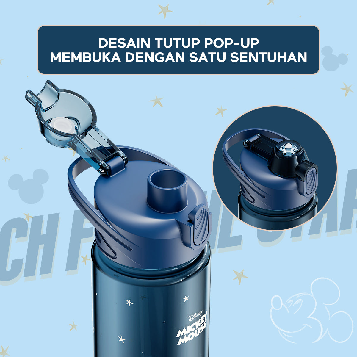 ⭐Memiliki desain tangan atau pegangan yang bula , lubang kecil untuk mimum langsung, badan botol berbahan AS, Motif gambar Mickey
