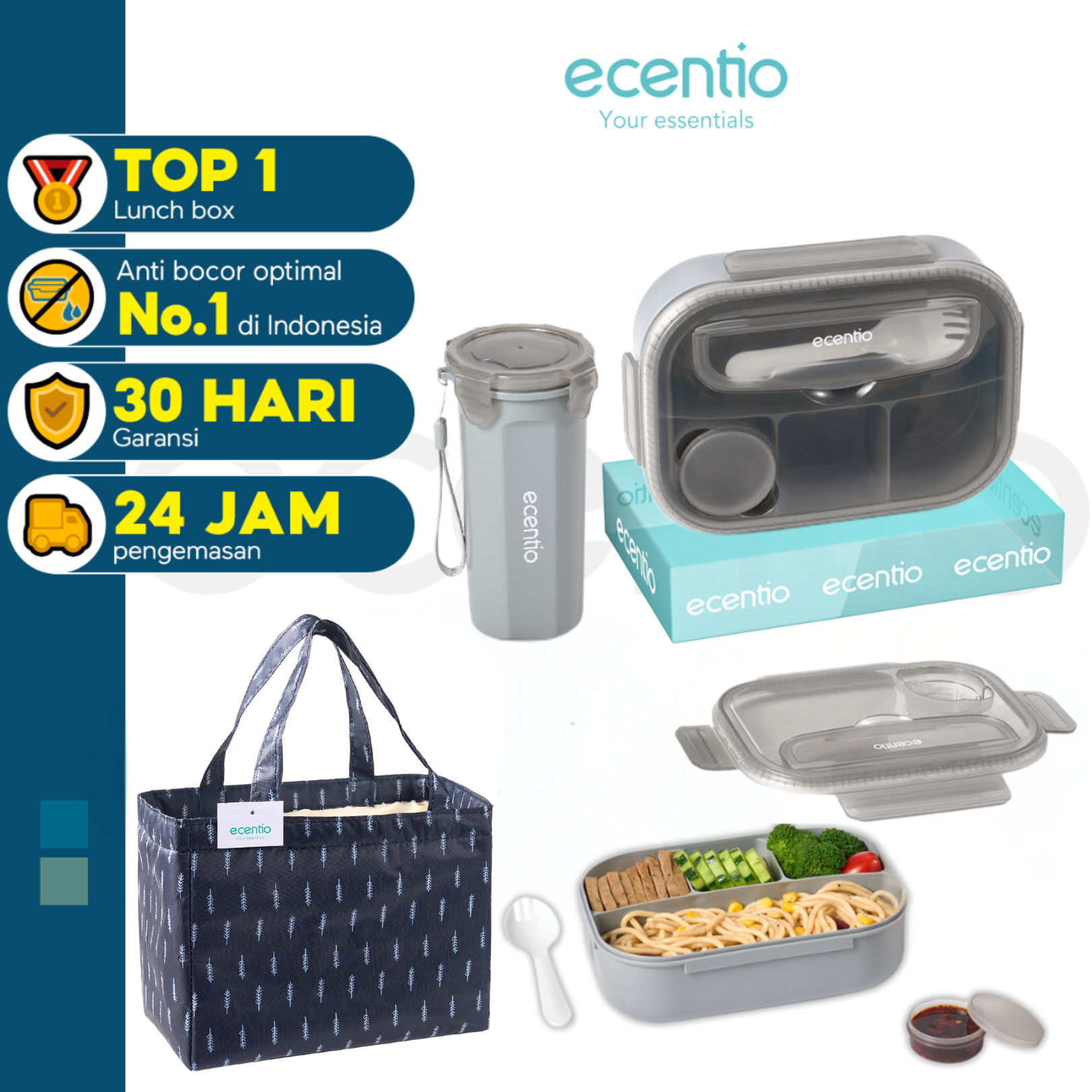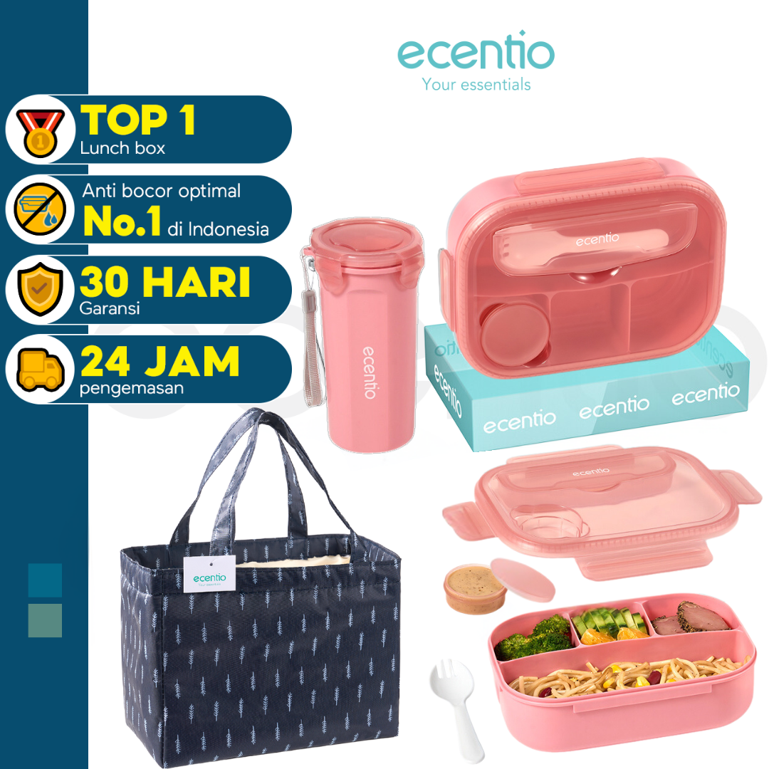 Nama: ecentio dua set cangkir + empat sekat kotak makan siang plastik