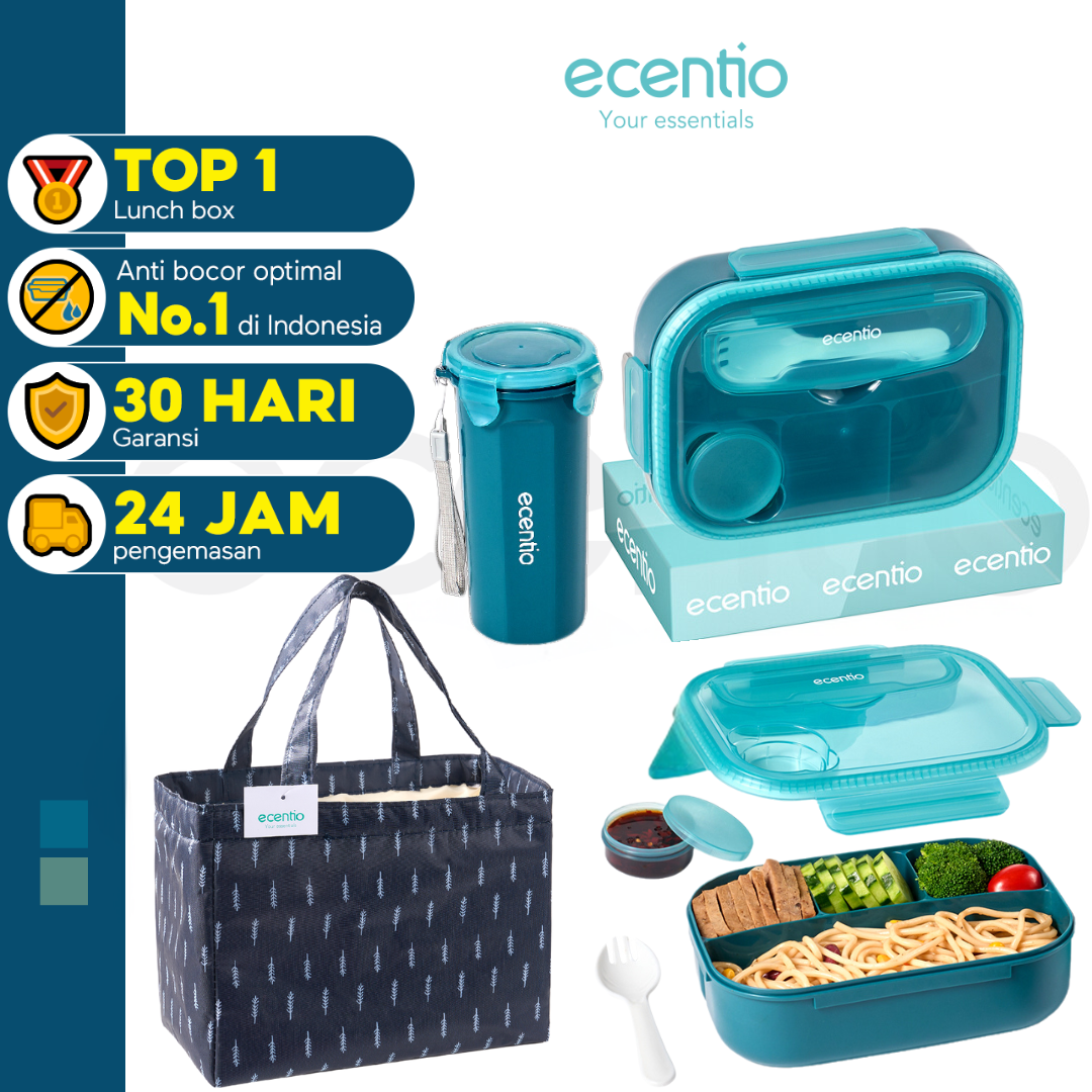 【Buy 1 Get 3】ecentio kotak bekal anti tumpah kotak tempat bekal 1200ml+500ml free sendok kotak saus BPA FREE
