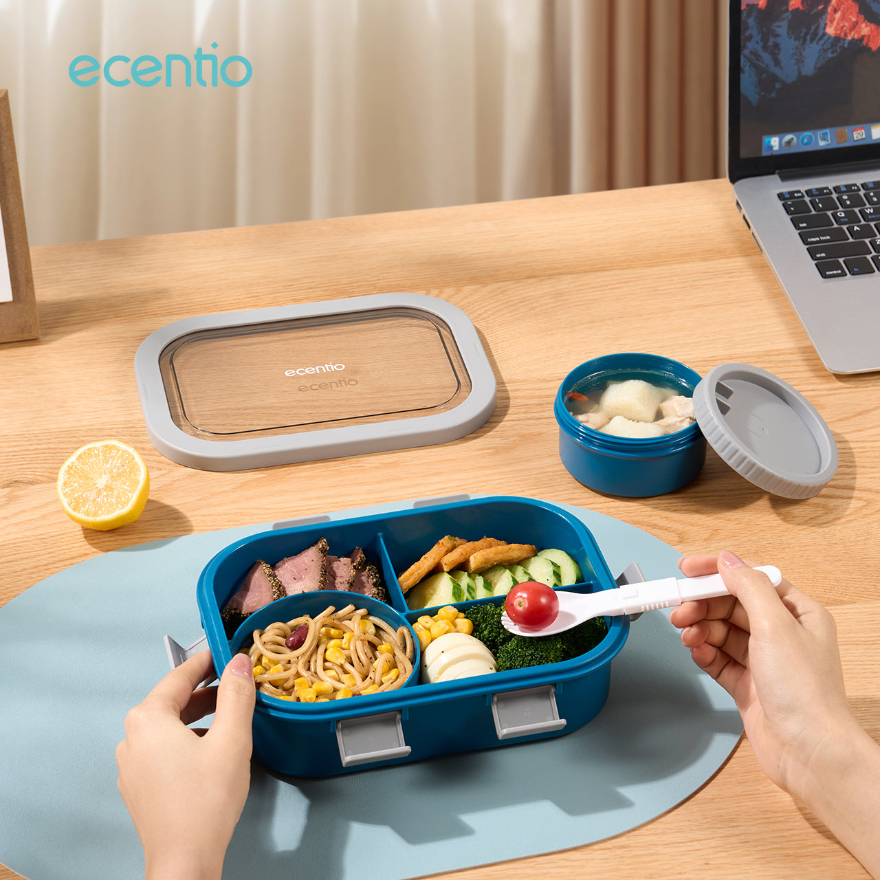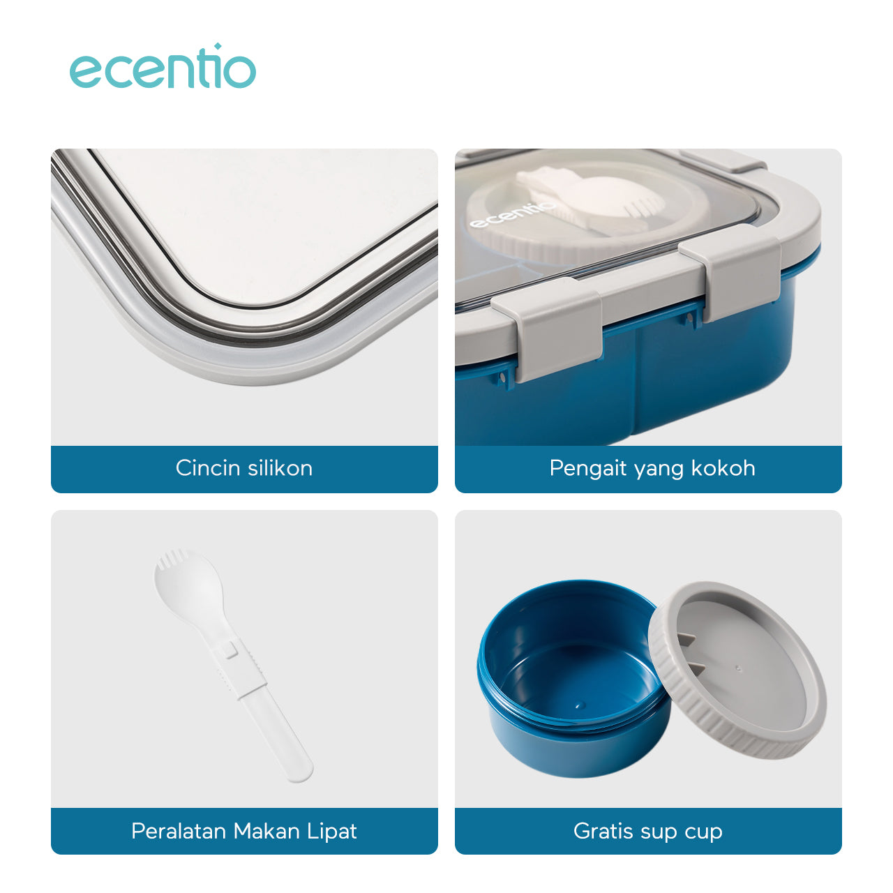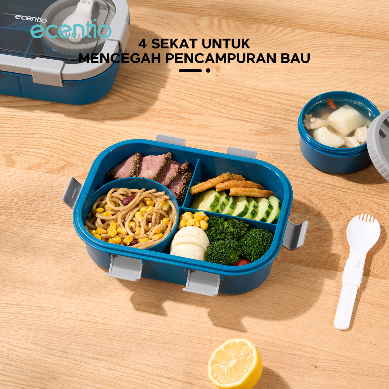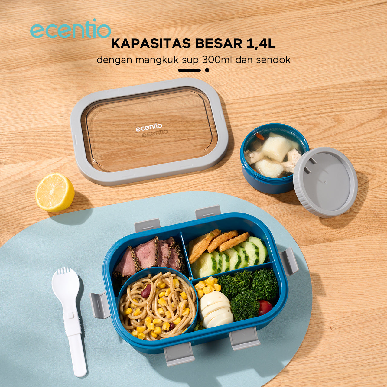 ecentio tempat makan Kotak Makan Lunch Box anti tumpah 1.4L mangkuk sup+sendok BPA Free