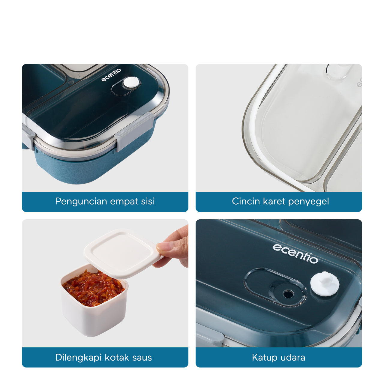 ecentio Anti Tumpah 1100ml Tempat Bekal 3 grid Kotak makan wadah bekal kotak sup 100ml BPA FREE-CF