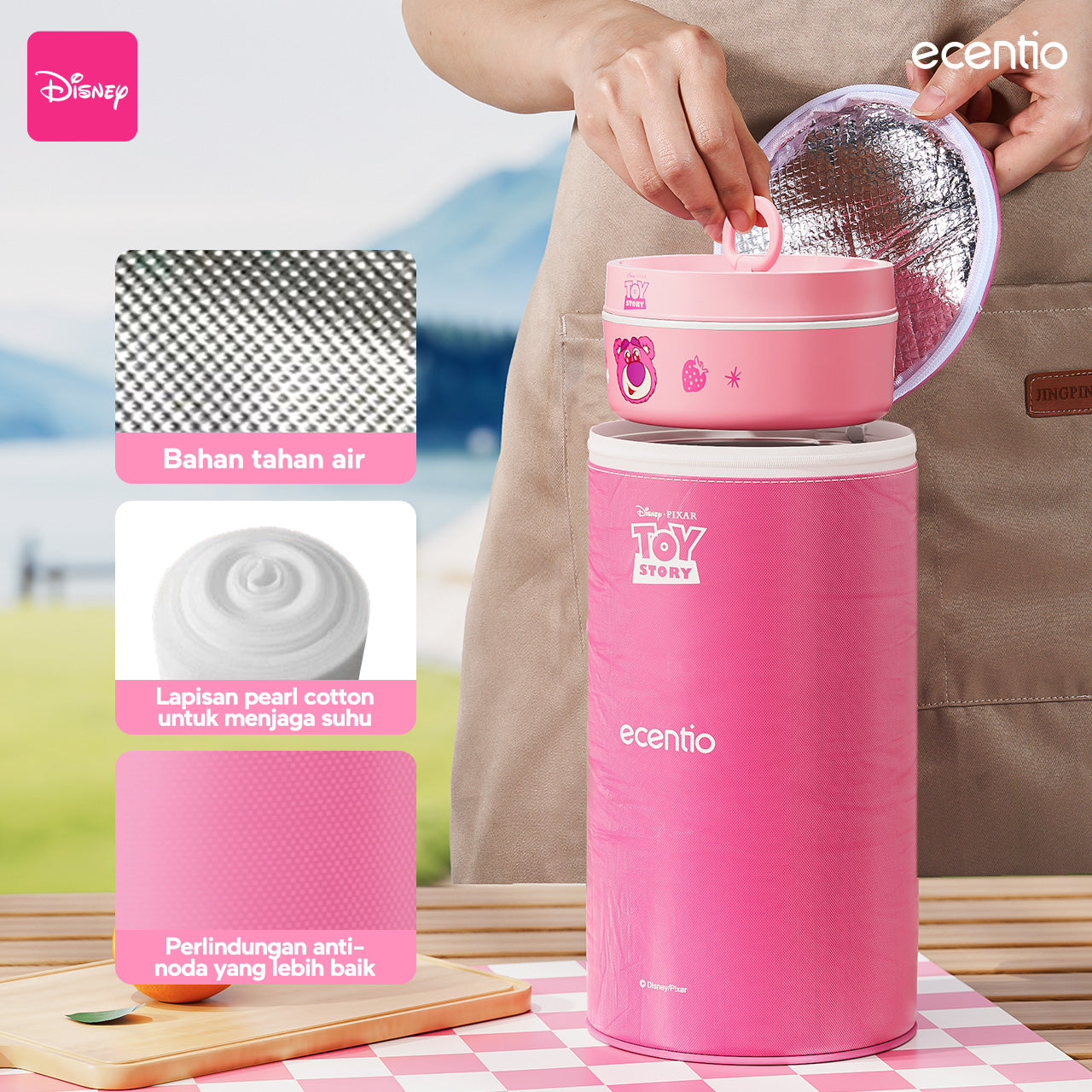 ecentio 3-pcs Kotak Makan Stainless Steel Disney Strawberry Bear — Praktis, Imut & Aman