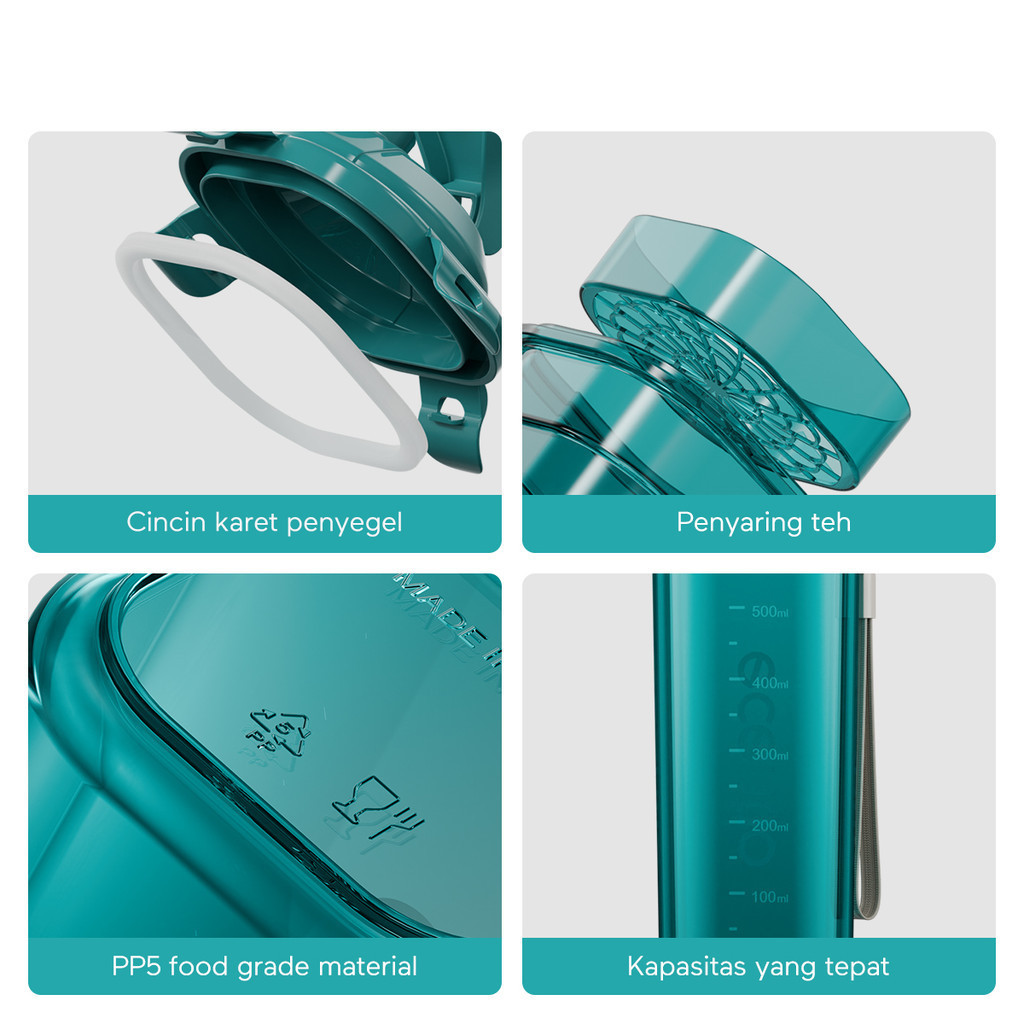 ecentio botol air minum Portable 500ml Olahraga bottle tail benning Anti Bocor BPA free dengan saringan teh