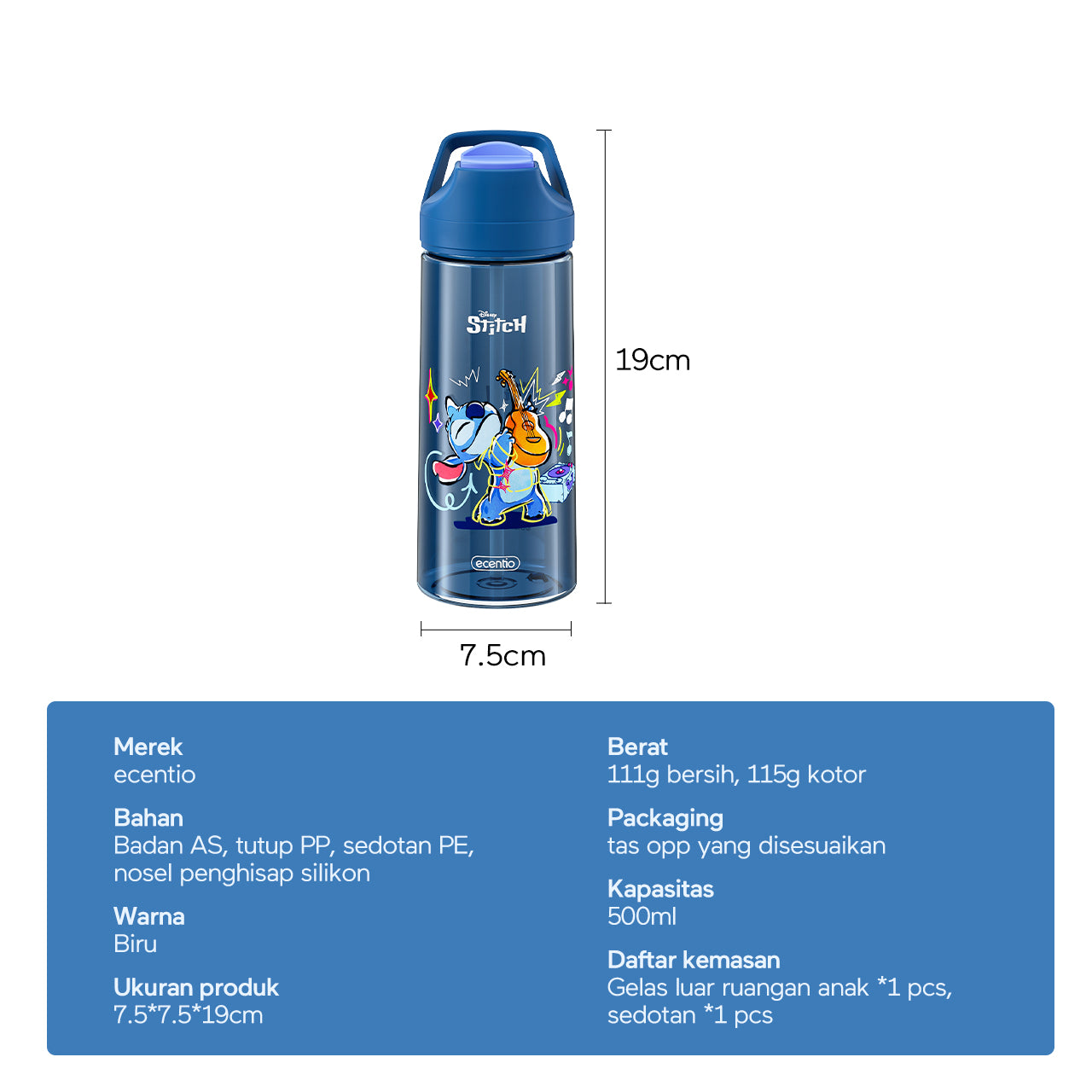 ecentio botol minum anak 500ml Disney Stitch lucu aesthetic perempuan botol air sekolah BPA free