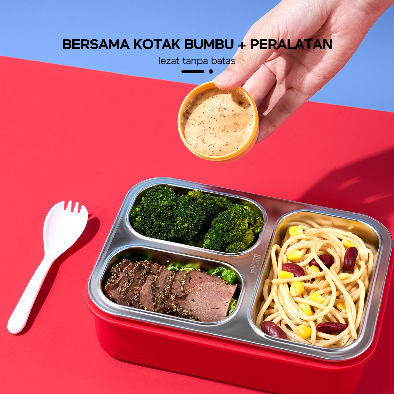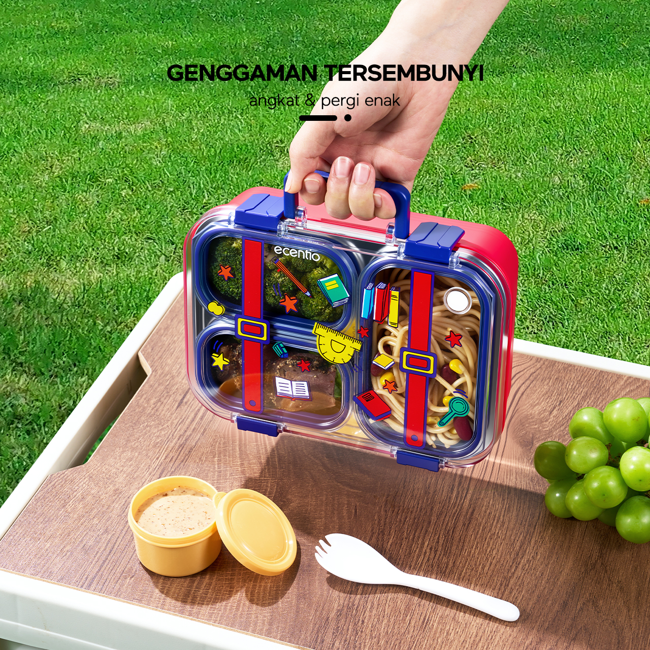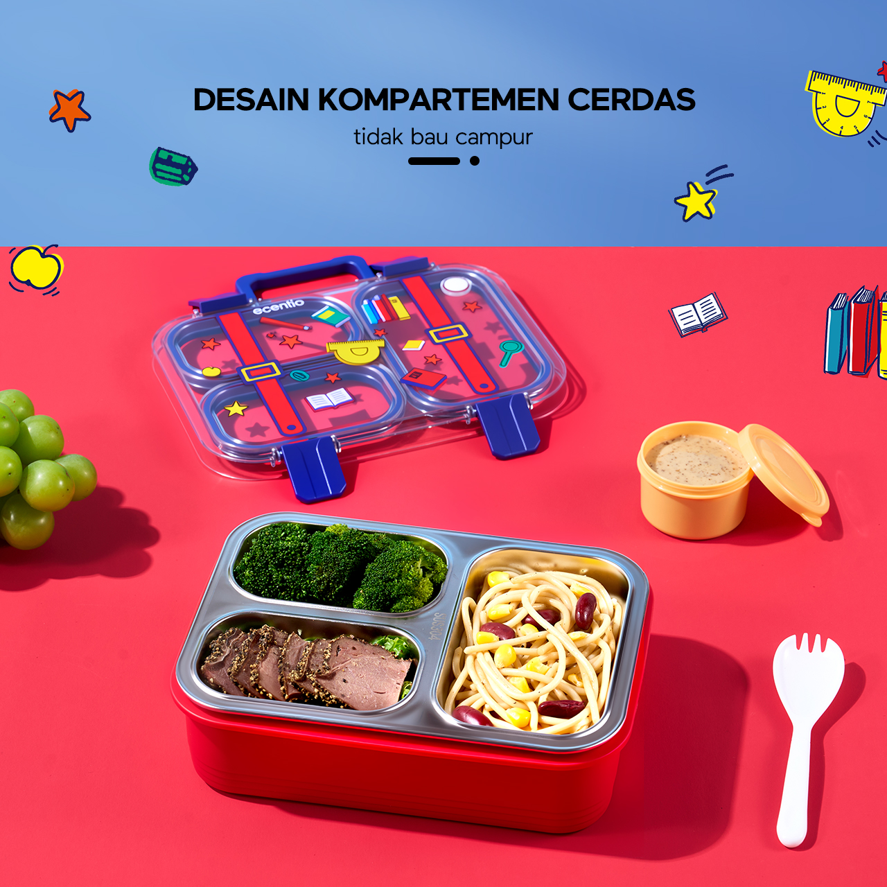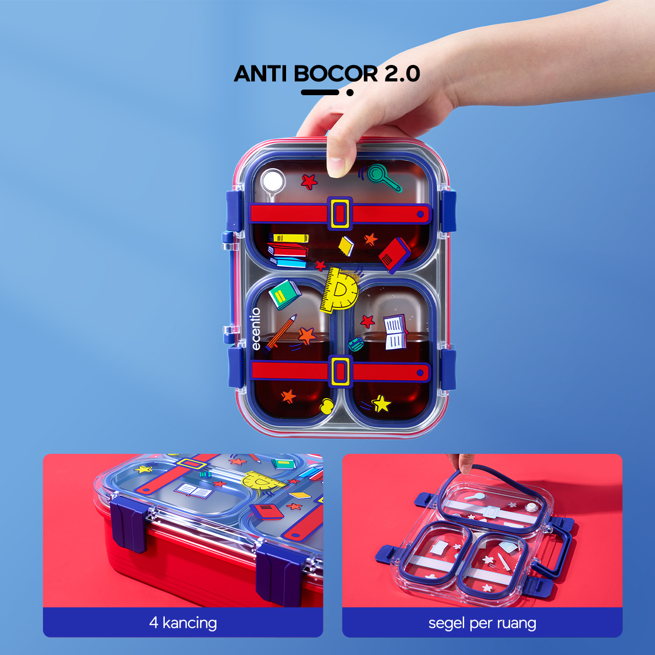 ecentio lunch box anak 750mml stainless 304 sekat 3 dan anti tumpah free sendok sumpit