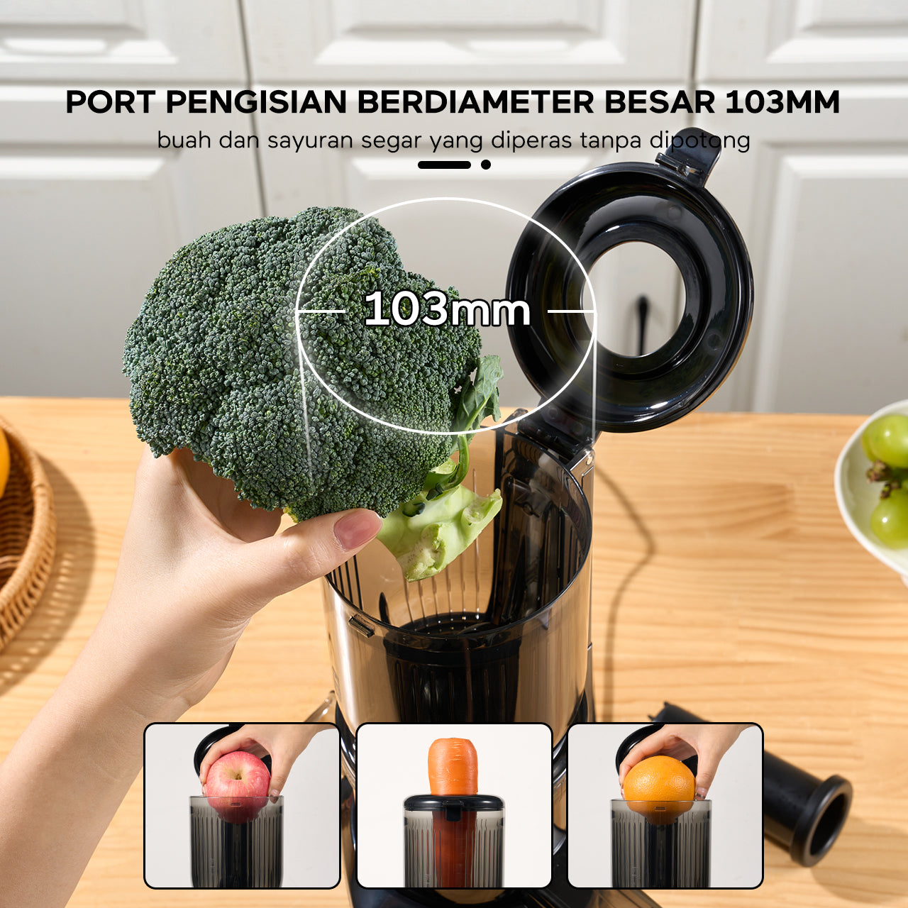 2. Port pengisian berdiameter besar 103mm, buah dan sayuran segar yang diperas tanpa dipotong.