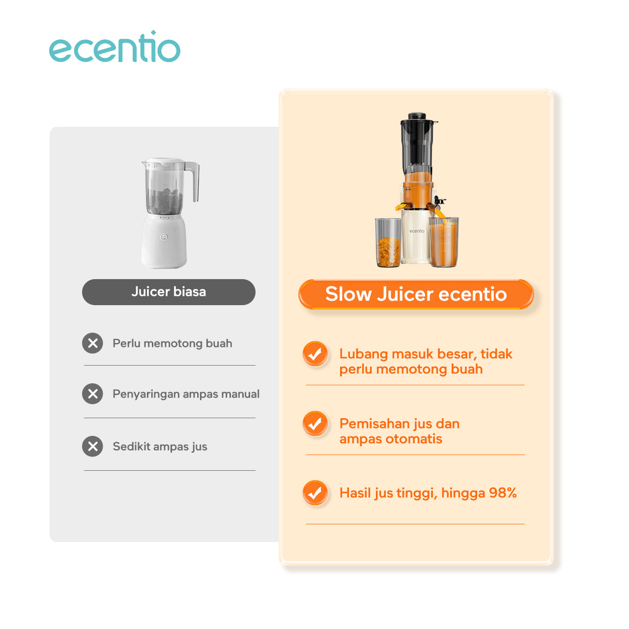 Nikmati pengalaman membuat jus yang praktis dan sehat dengan ecentio slow juicer.
