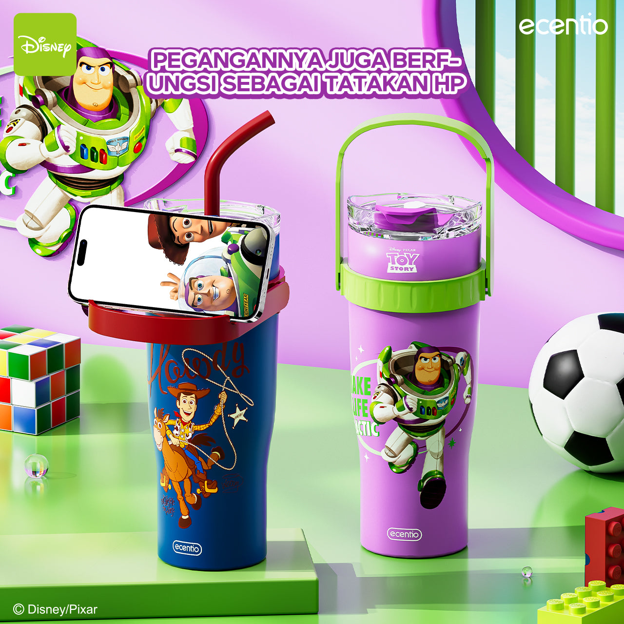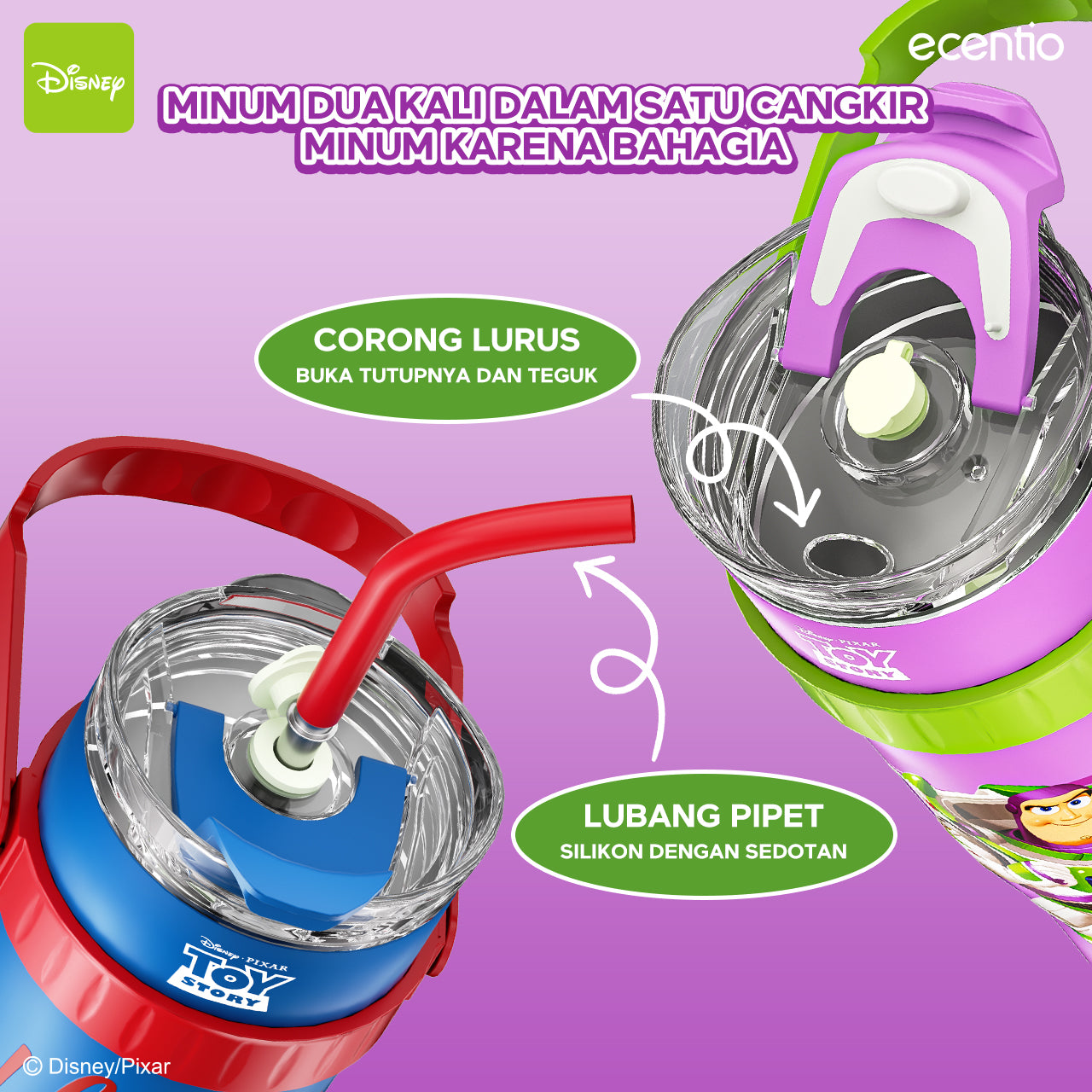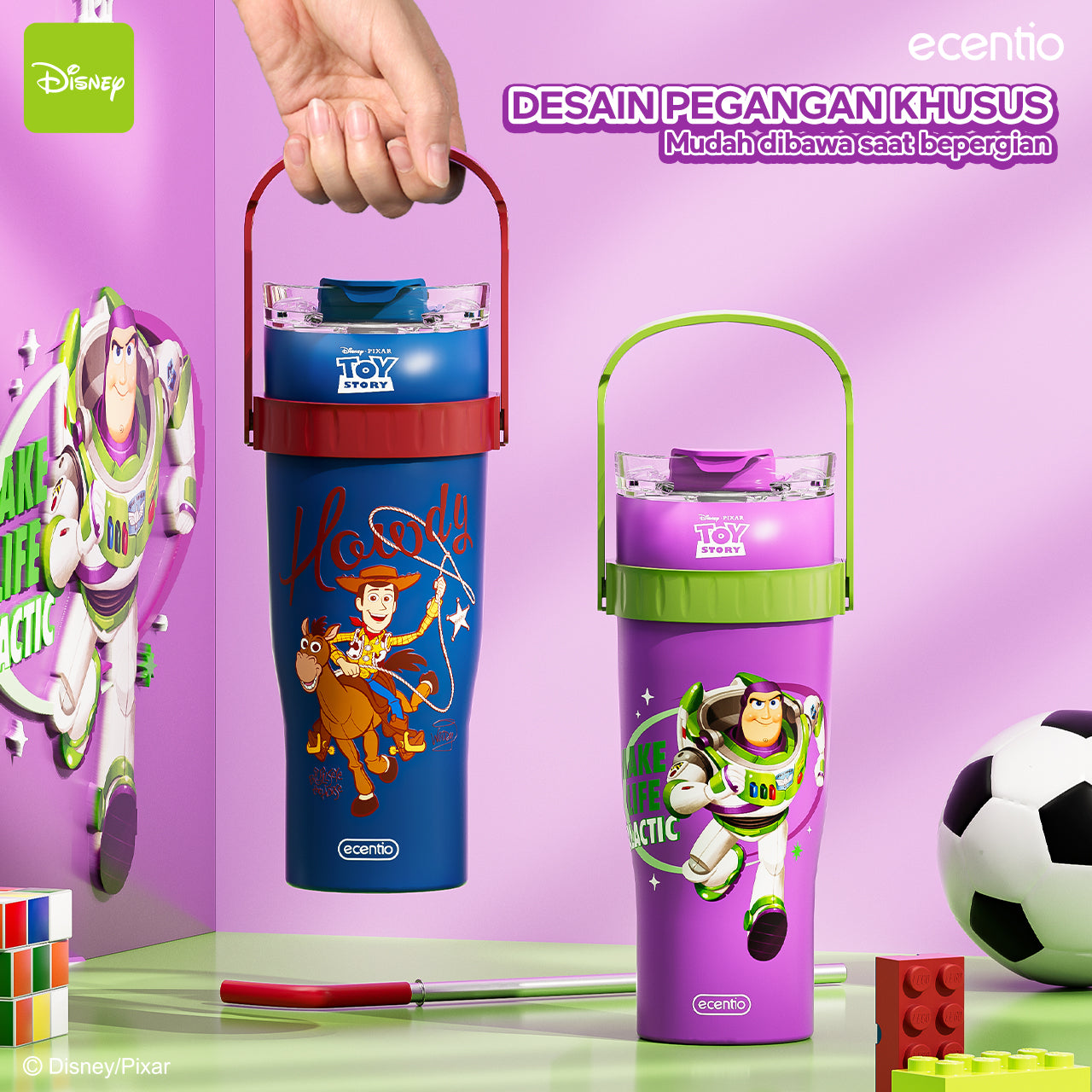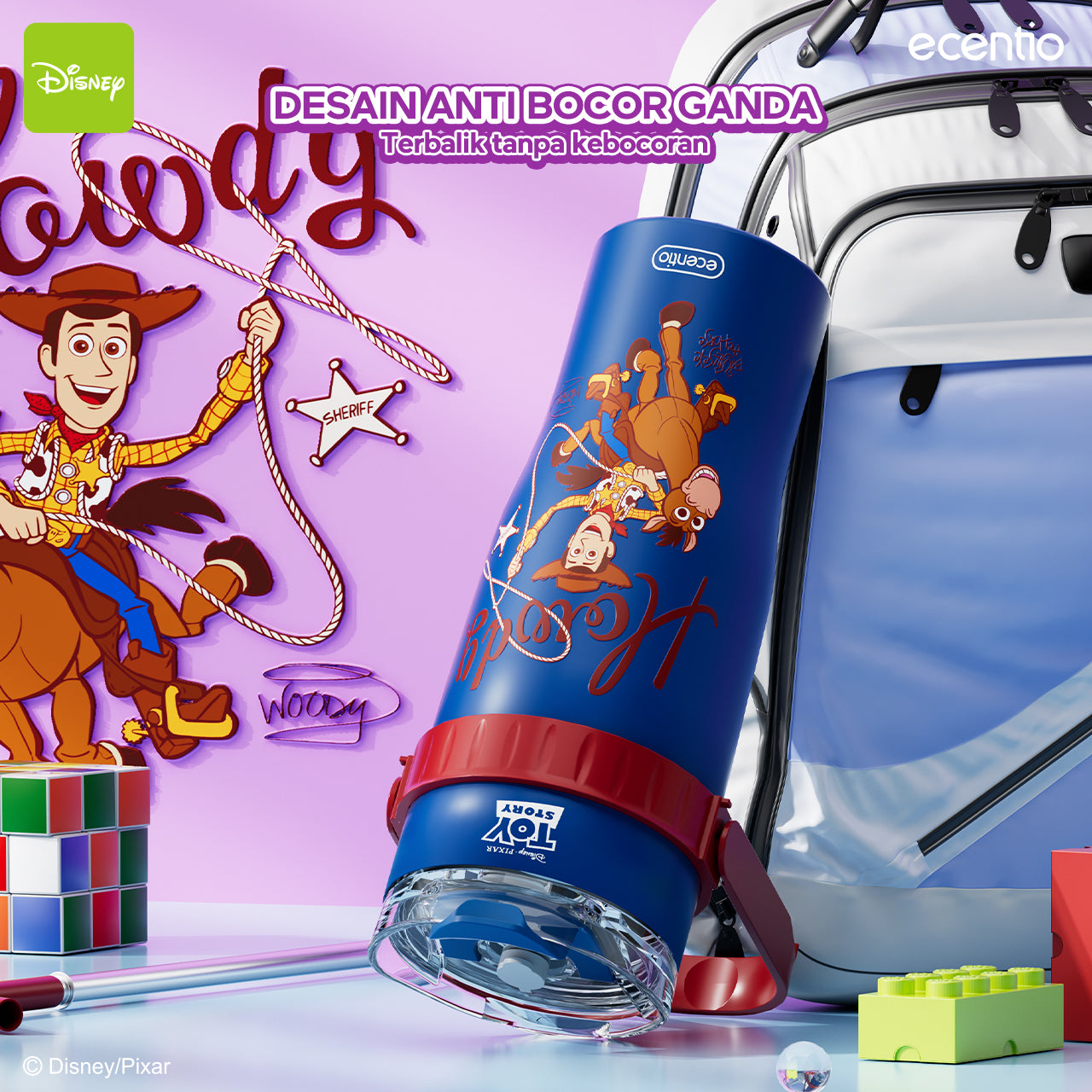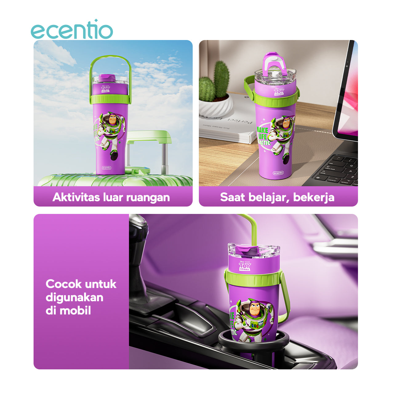 ecentio tumbler minum stainless 1.2L Disney Toy Story Woody & Buzz tahan dingin 24jam premium botol minum aesthetic besar