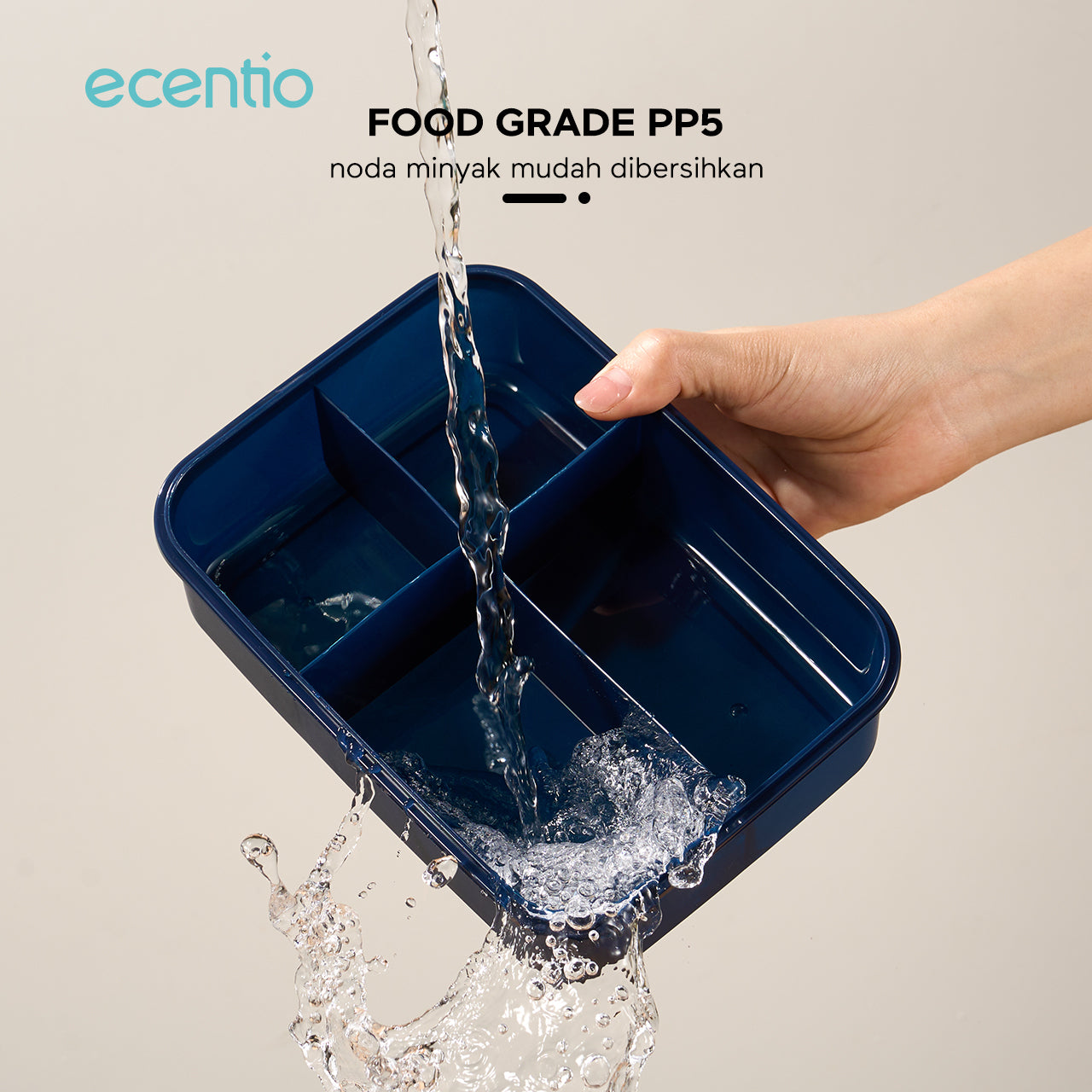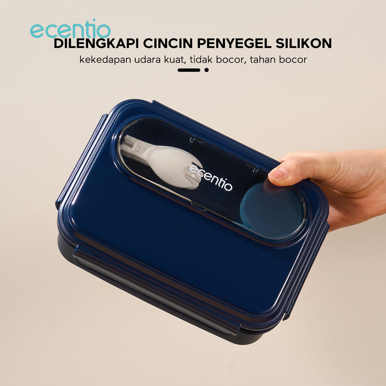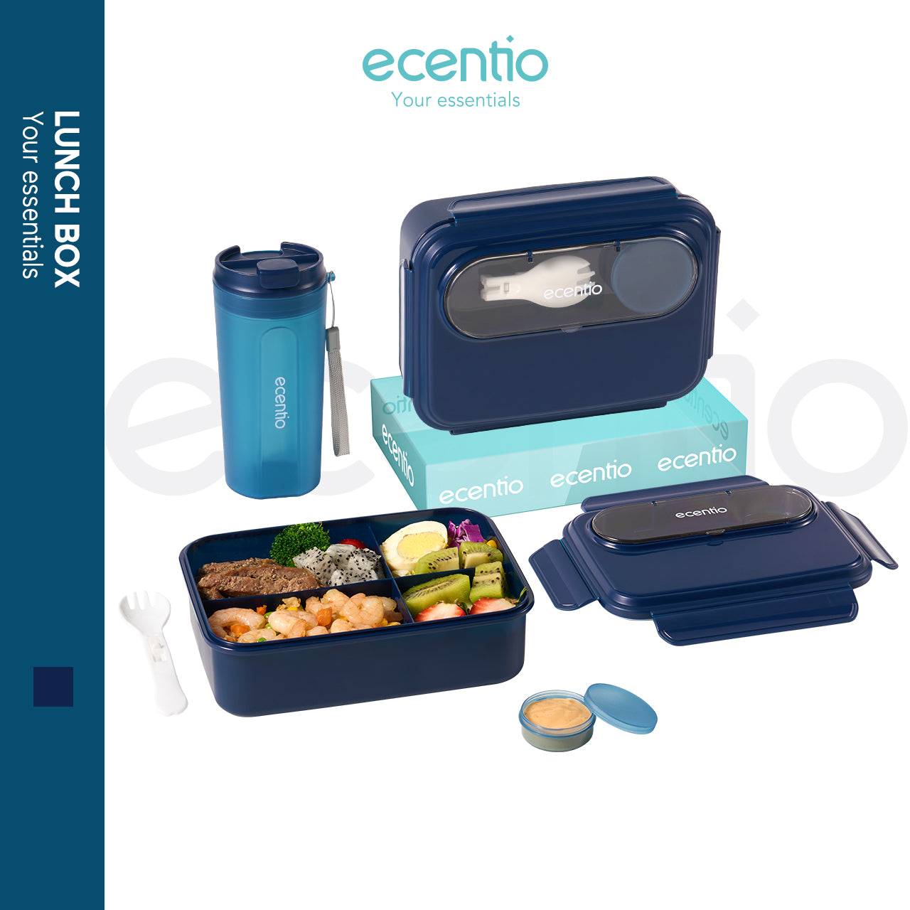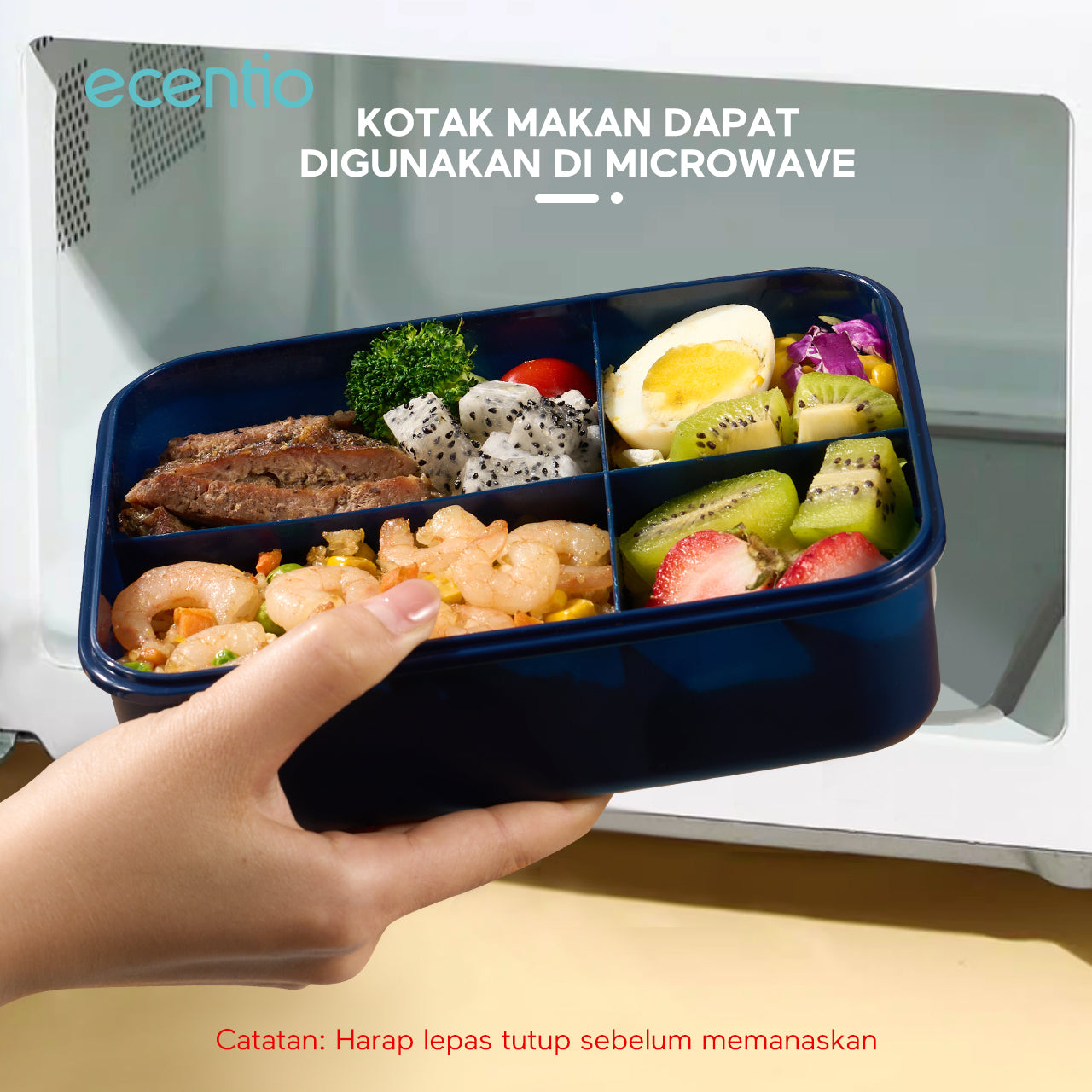 【New Launch】ecentio Kotak Bekal Makan Set 1200ml + 500ml sekat 4 dengan kotak saus&sendok BPA free lunch box set Gratis botol minum