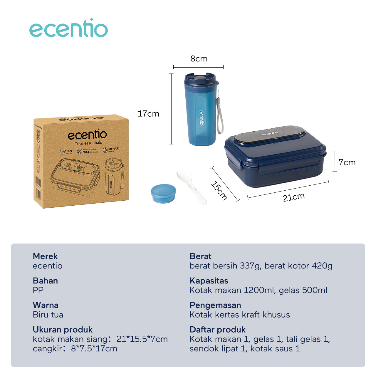 Nama Produk: Set Kotak Makan ecentio-1.2L + Gelas Air 500ml