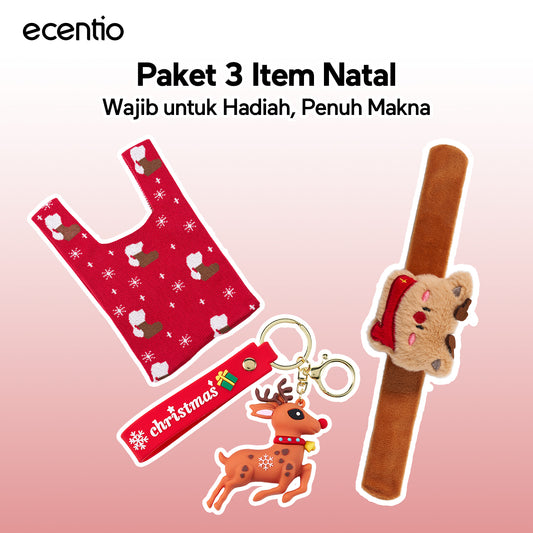[accessories] ecentio Kombinasi Natal Gantungan Kunci Natal Kartun Gelang Slap Bulu Halus Tas Rajut Natal