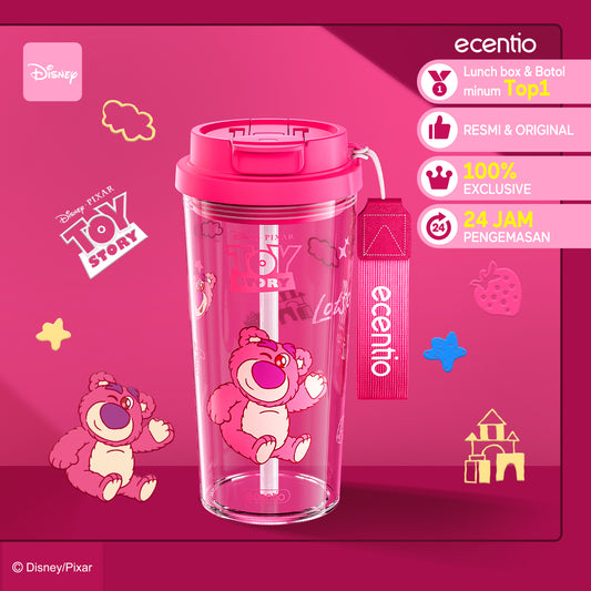 【Original】ecentio Tumbler Disney Lotso 1.2L Tahan Dingin 24 Jam Sedotan & Dudukan Ponsel Bonus Stiker 3D DIY