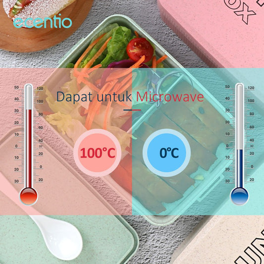 ecentio Anti Tumpah lunch box kotak makan 3 Warna PP Jerami Gandum tempat bekal makan 1000ML Free Sendok BPA Free