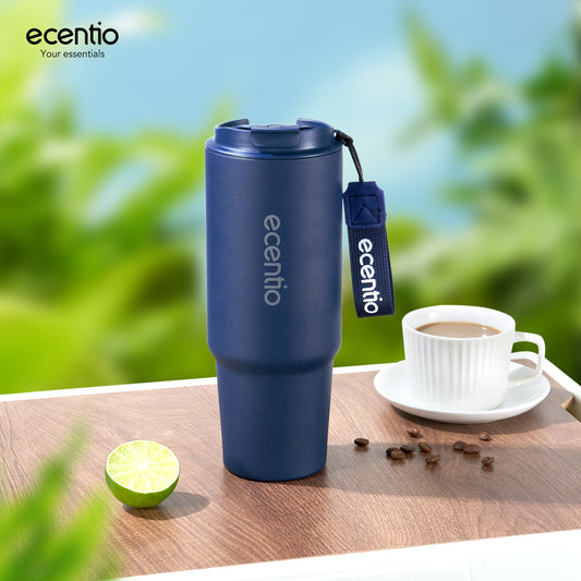 ecentio tumbler Stainless Vacuum 900ml tali rajut portable Thermos Botol minum besar mulut gelas untuk minum langsung coffee kopi