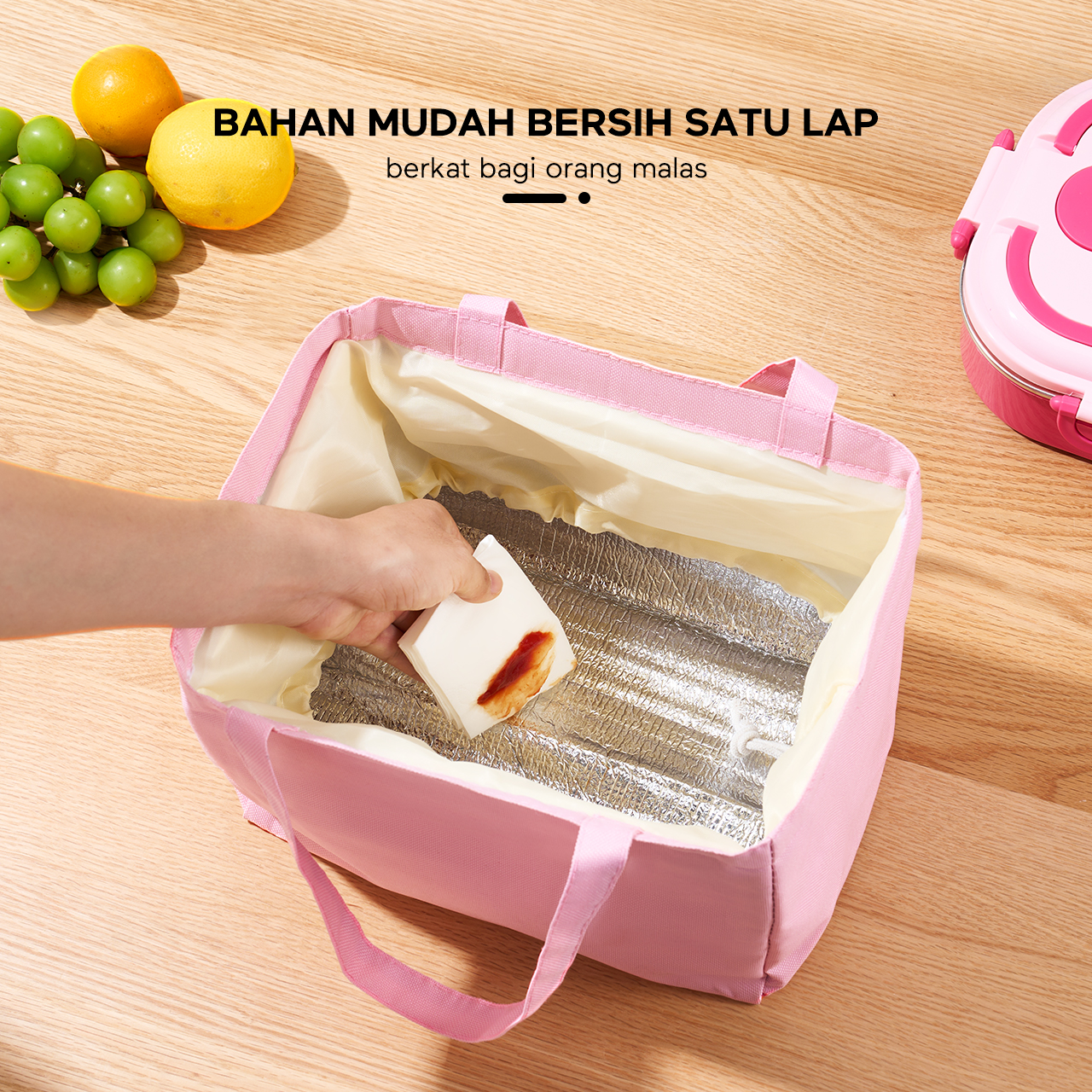 ecentio lunch bag /lunch tas Tas Bekal Makanan Merah Muda/Tote bag Waterproof ukuran besar