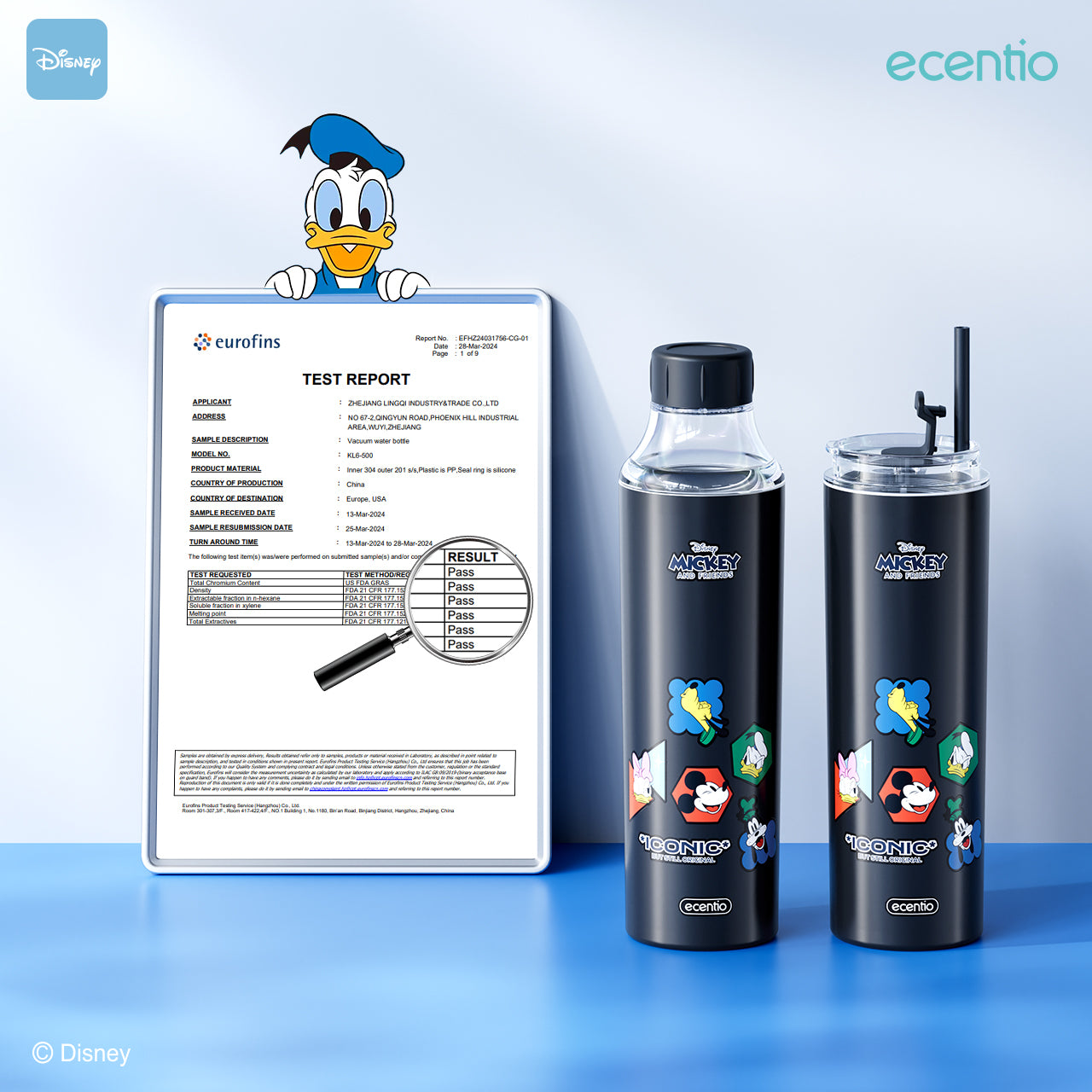 【Original】ecentio 600ml 304 Stainless Steel botol minum Tutup Ganda Disney Micky hitam